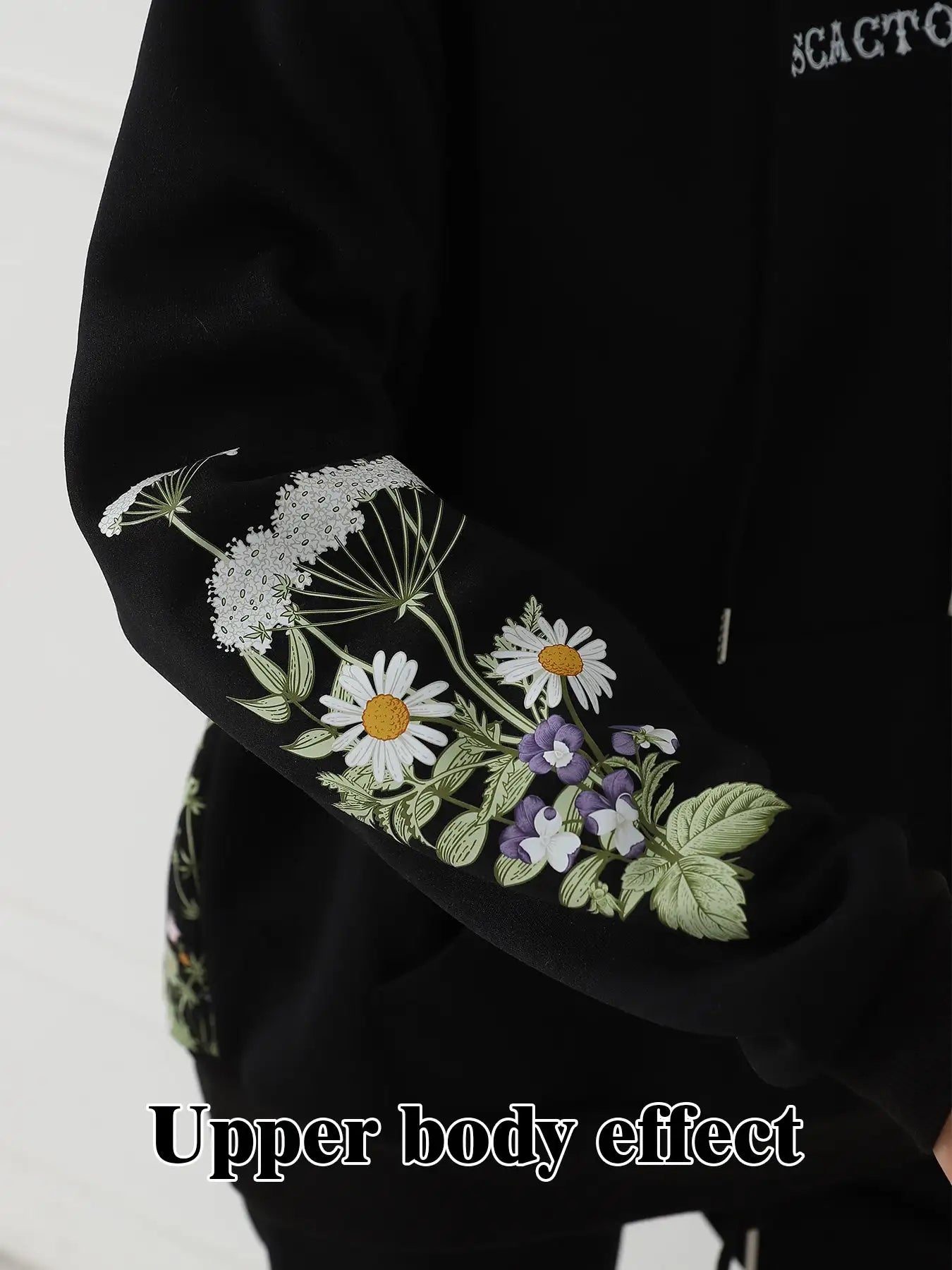 Women's Solid Color Floral Long Sleeved Sweatshirt