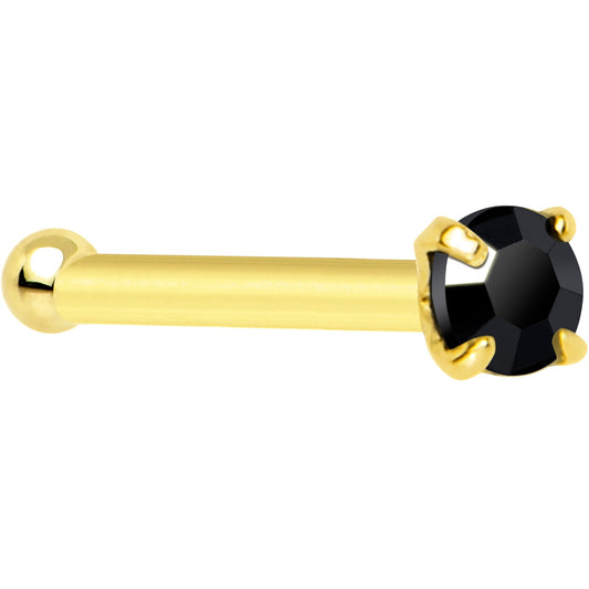 Solid 14K Yellow Gold 2mm Black Cubic Zirconia Nose Bone