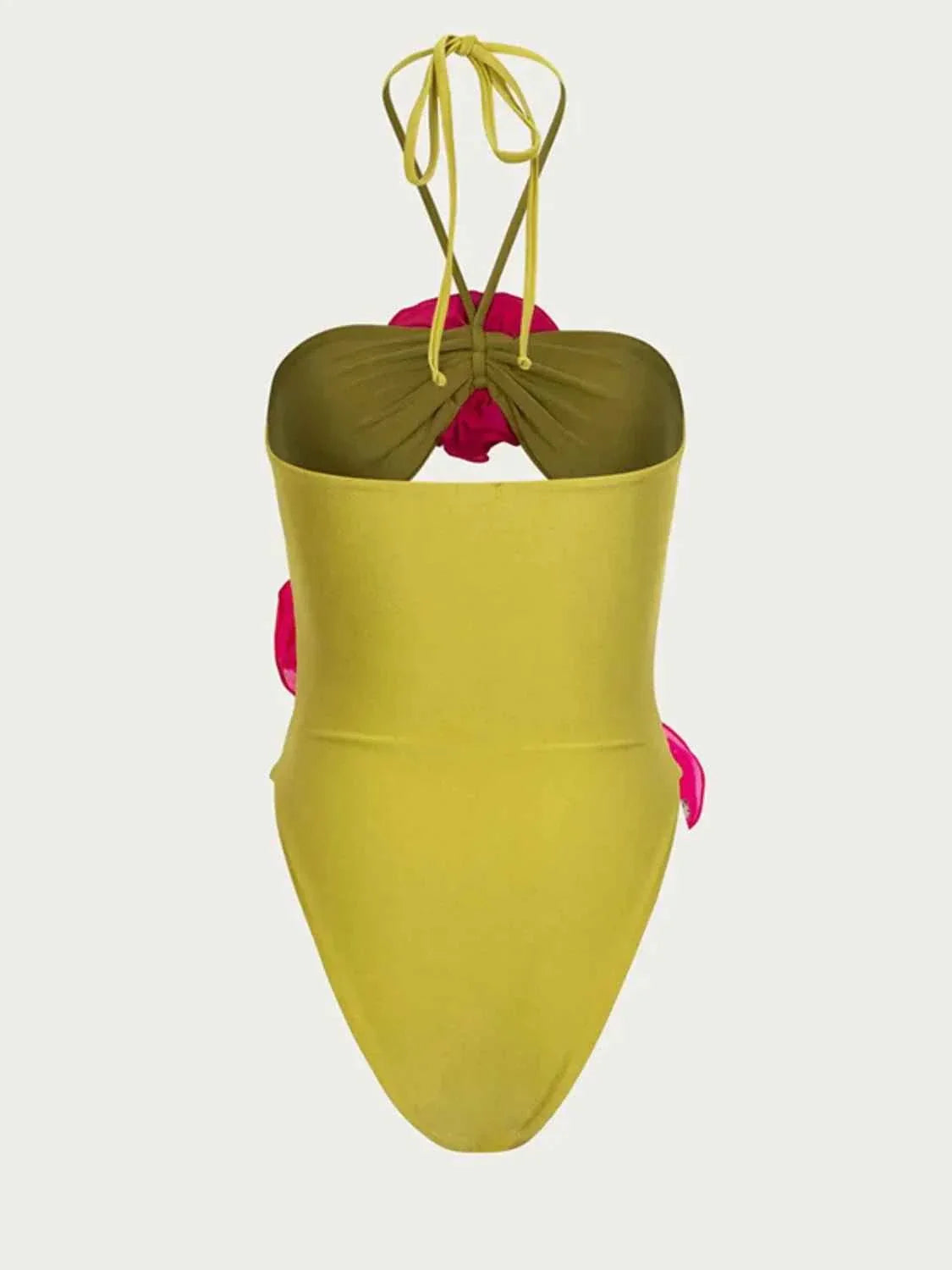 Flower Cutout Halter : Neck One-Piece Swimwear