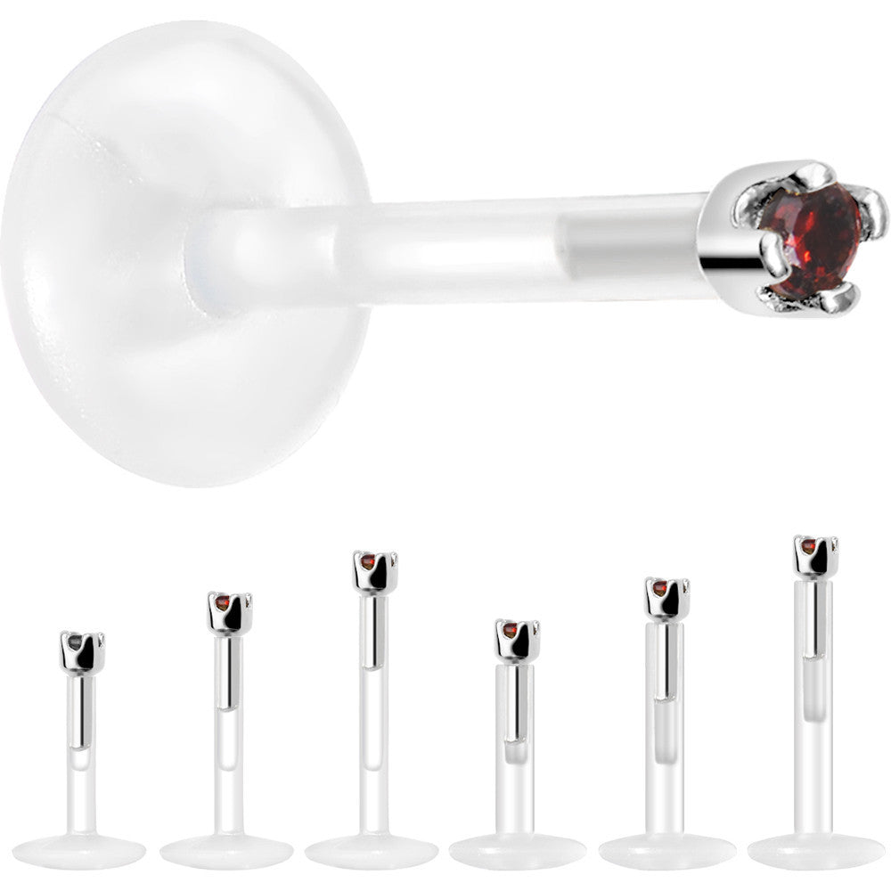 Solid 14K White Gold January 1.5mm CZ Bioplast Push in Labret Monroe