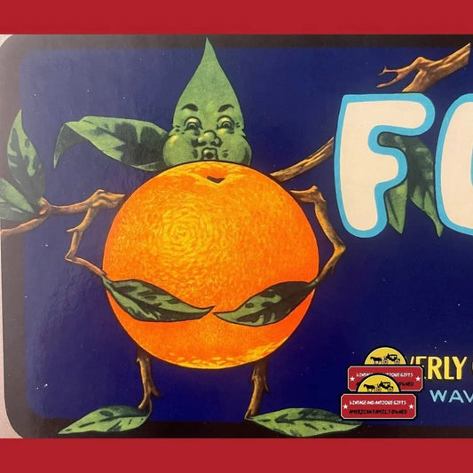 Rare 1940s Stick Leaf Man Antique Vintage Crate Label