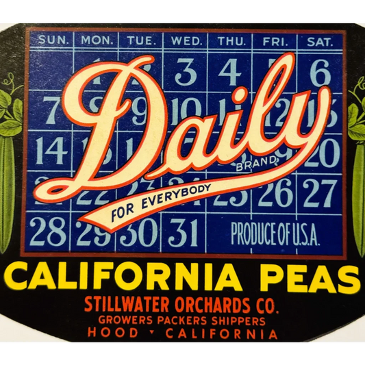 Rare 1940s Daily Peas Crate Label from California Orchards