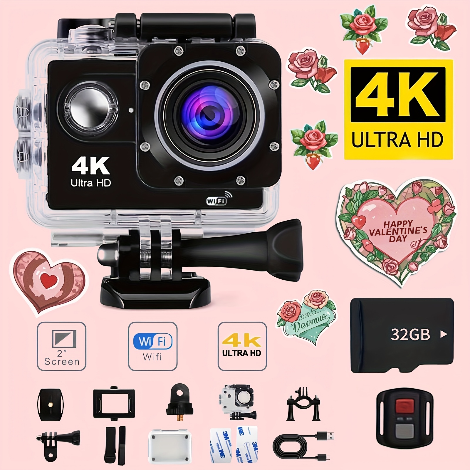 4K WIFI Action Camera: Unleash Your Visual Creativity with 170° Ultra-Wide Angle, Crisp 2" Display, And Ample 32GB Memory. Paired with A Remote Control Accessory Kit for Ultimate Convenience. Father's Day Gift, Capture And S