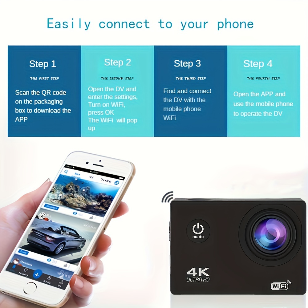 Capture every breathtaking moment in stunning 4K resolution with our remarkable 4K WIFI Action Camera. This compact yet powerful device is designed to accompany you on all your adventures.