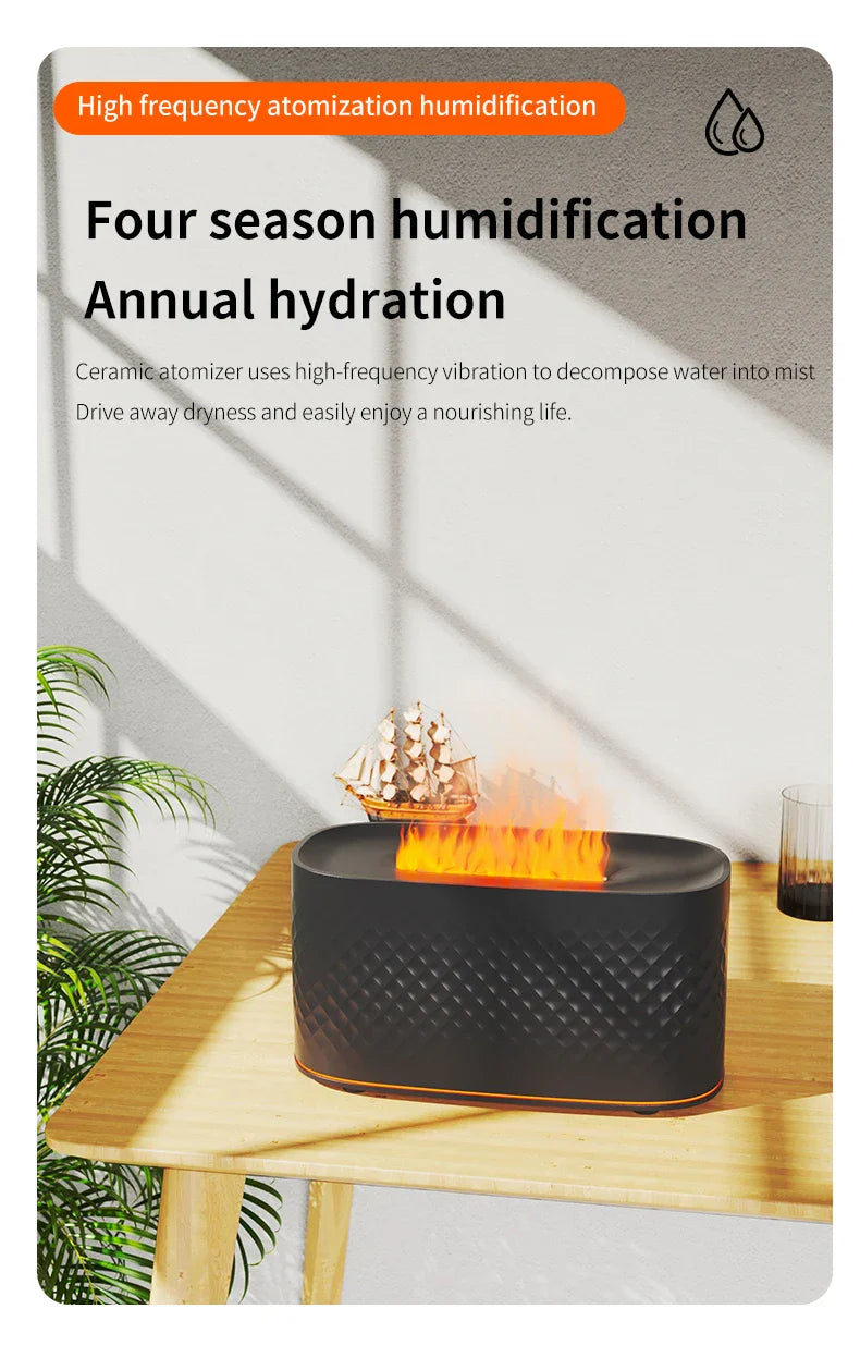 Colorful Simulation Flame Aroma Diffuser Home Hotel Desktop USB Air Humidifier