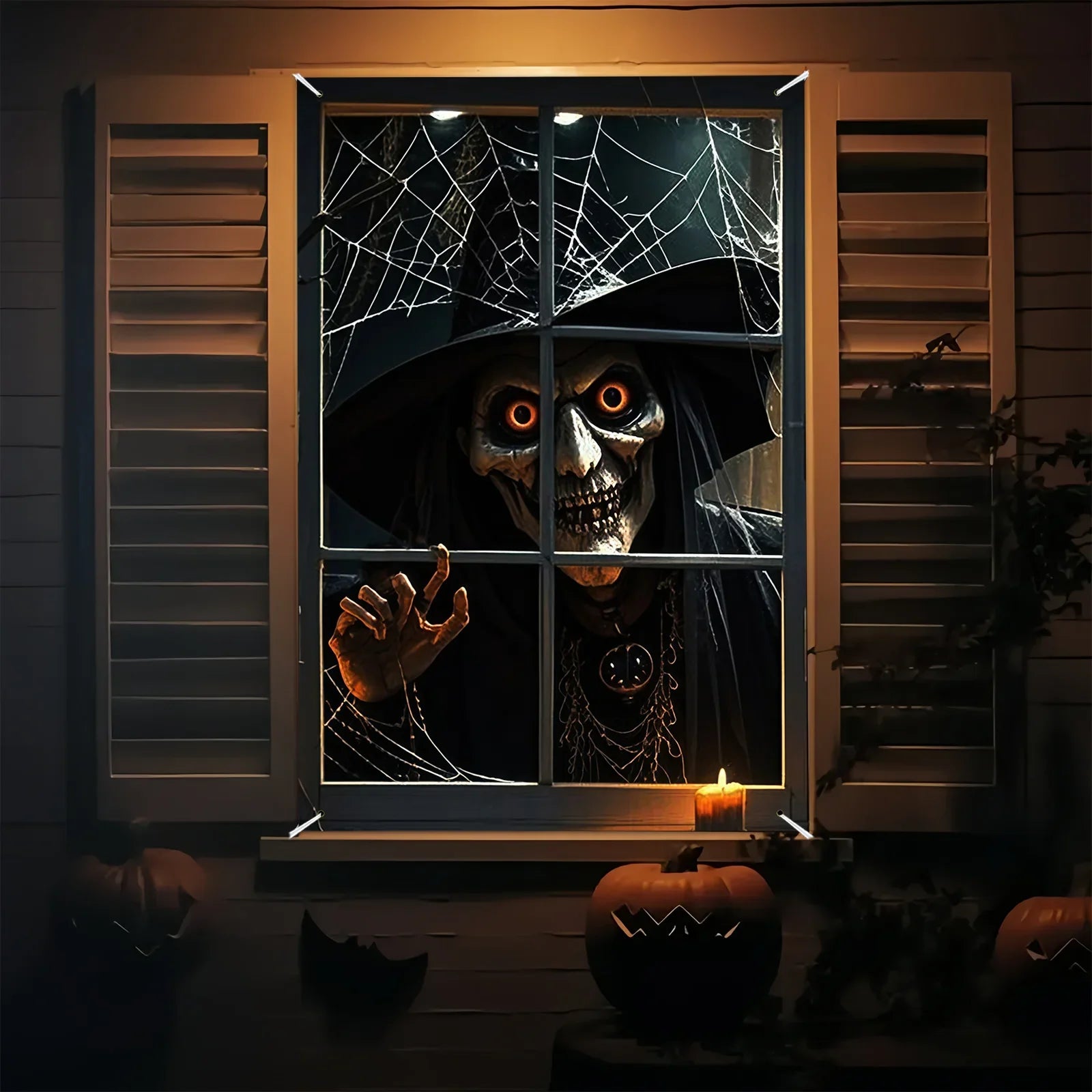 Halloween decoration, 1 piece, polyester material window banner with terrifying and fantastical patterns, evil witch theme