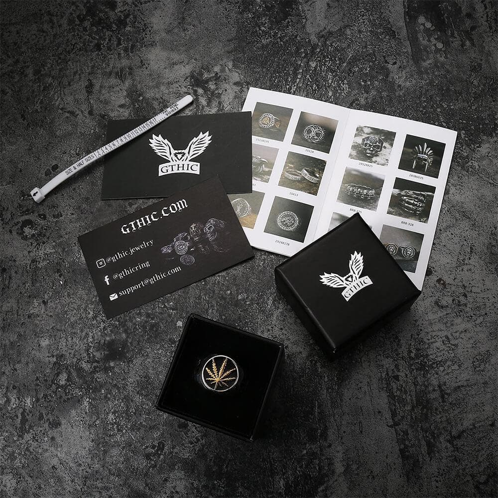 Fans of these mesmerizing Hemp Leaf are sure to feel an instant affinity with this delightful ring. This breathtaking ring features three detailed hemp leaf around the exterior of the band. We take every step of the production process to perfection, finishing each ring with a high shine polish to really make it glow in all its glory.