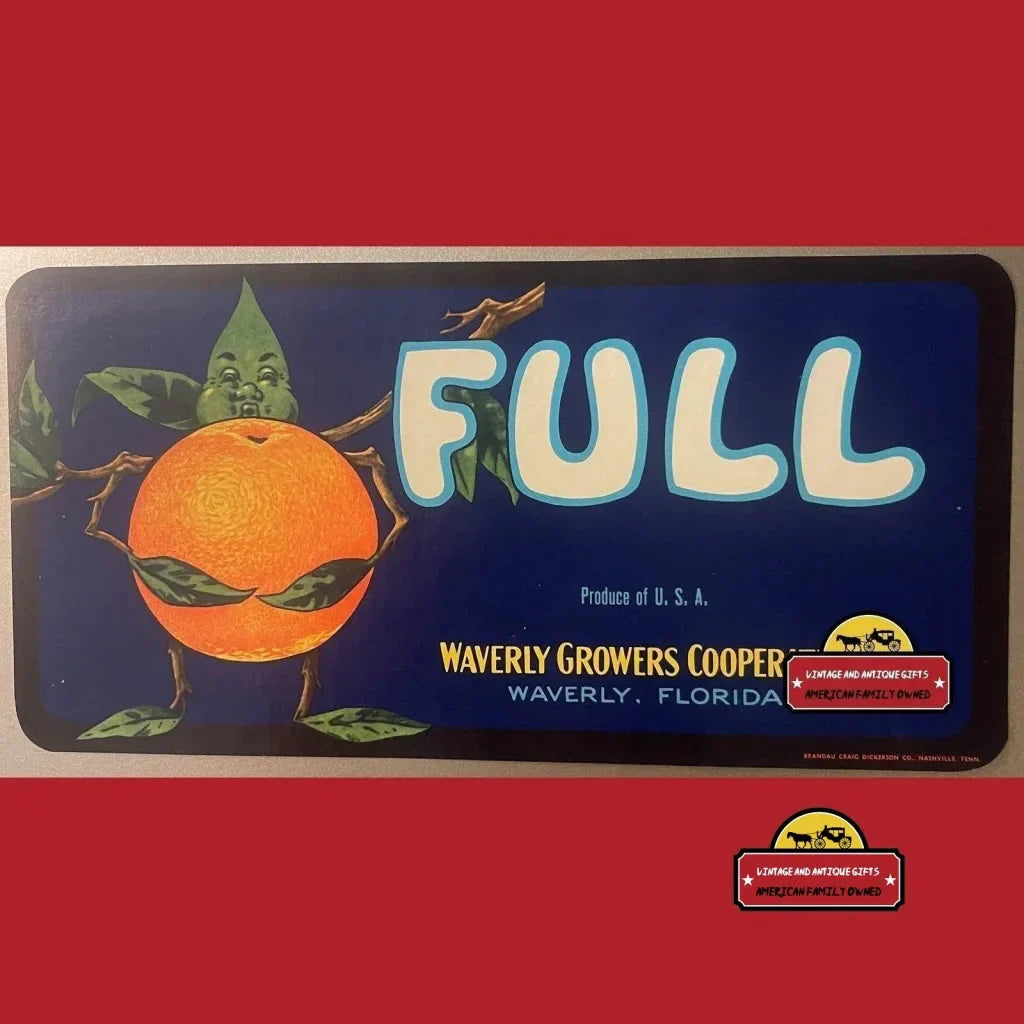 Step back in time with this extraordinary antique vintage full crate label from the 1940s! This rare gem is not just a piece of history; it's a vibrant work of art that will infuse your home or collection with unparalleled charm and character. Bursting with vivid colors that have stood the test of time, this exquisite label showcases the whimsical image of a keen-looking stick leaf man – a quirky and captivating focal point that sets this piece apart from ordinary vintage decor.