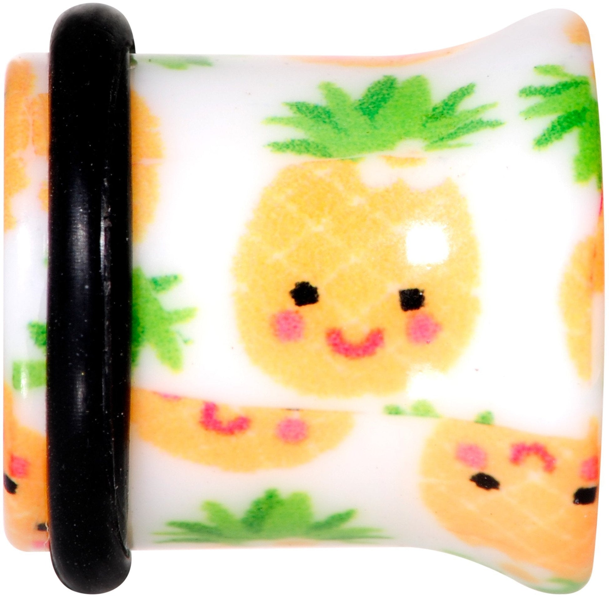 A little daisy on her top is making this pineapple feel pretty today, you can tell by her sweet little smile. And you'll be smiling and feeling pretty too once you get your hands on these single flare plugs. They're made of lightweight acrylic with a rubber o-ring so they aren't only comfortable but you also don't have to worry about them slipping out of place. You may have felt pretty as a picture, but now you can feel pretty as a pineapple! Sold as a set of two.