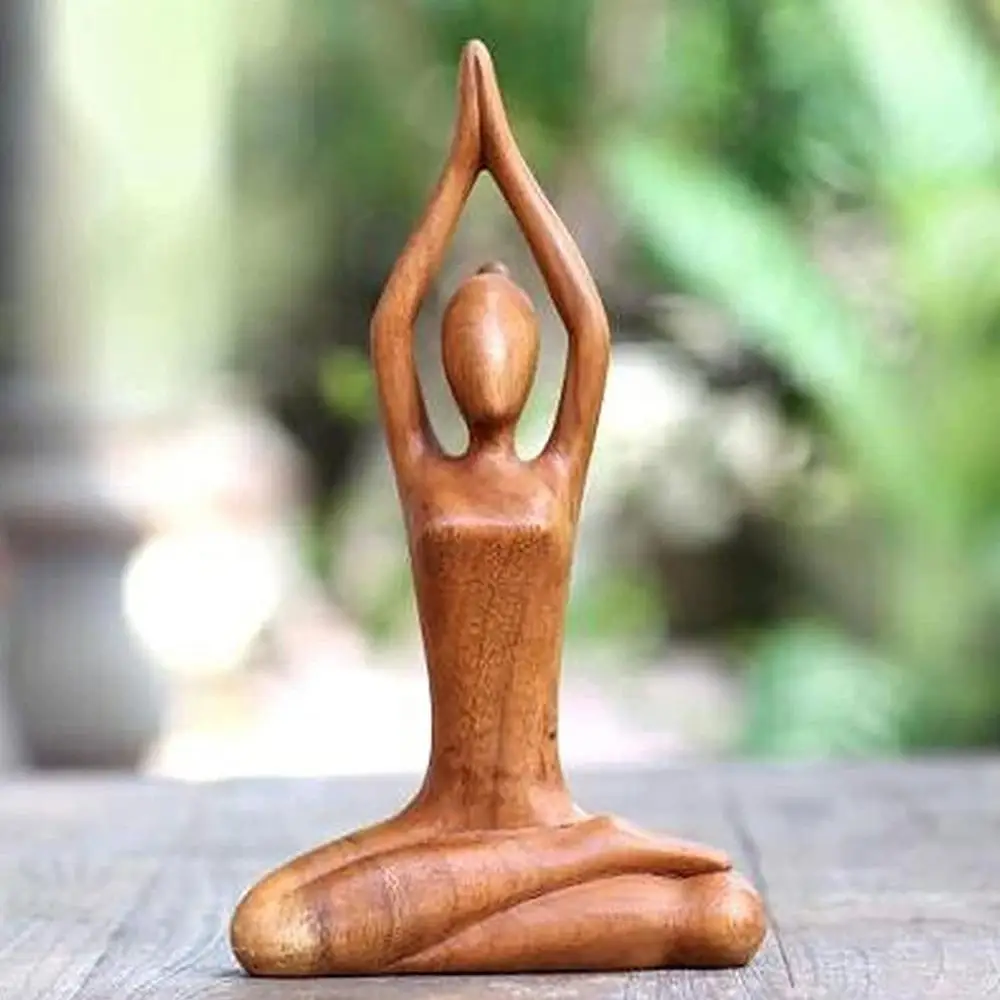Wooden Yoga Pose Sculpture Abstract Yoga Meditation Statue Hand Carved Wood Fragrant Art Decoration Gallery Tabletop Ornaments