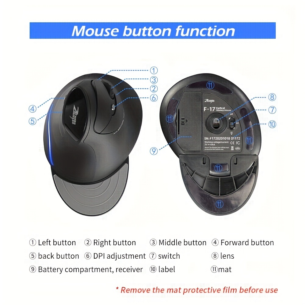 ZELOTES Ergonomic Wrist Rest Mouse, 2.4G Vertical Wireless Gaming Mouse, Comfort Grip, Right Hand Orientation, Battery Powered (Batteries Not Included), 393.7inch Range, Plastic Material, No Charging Function, ≤36V Operatin