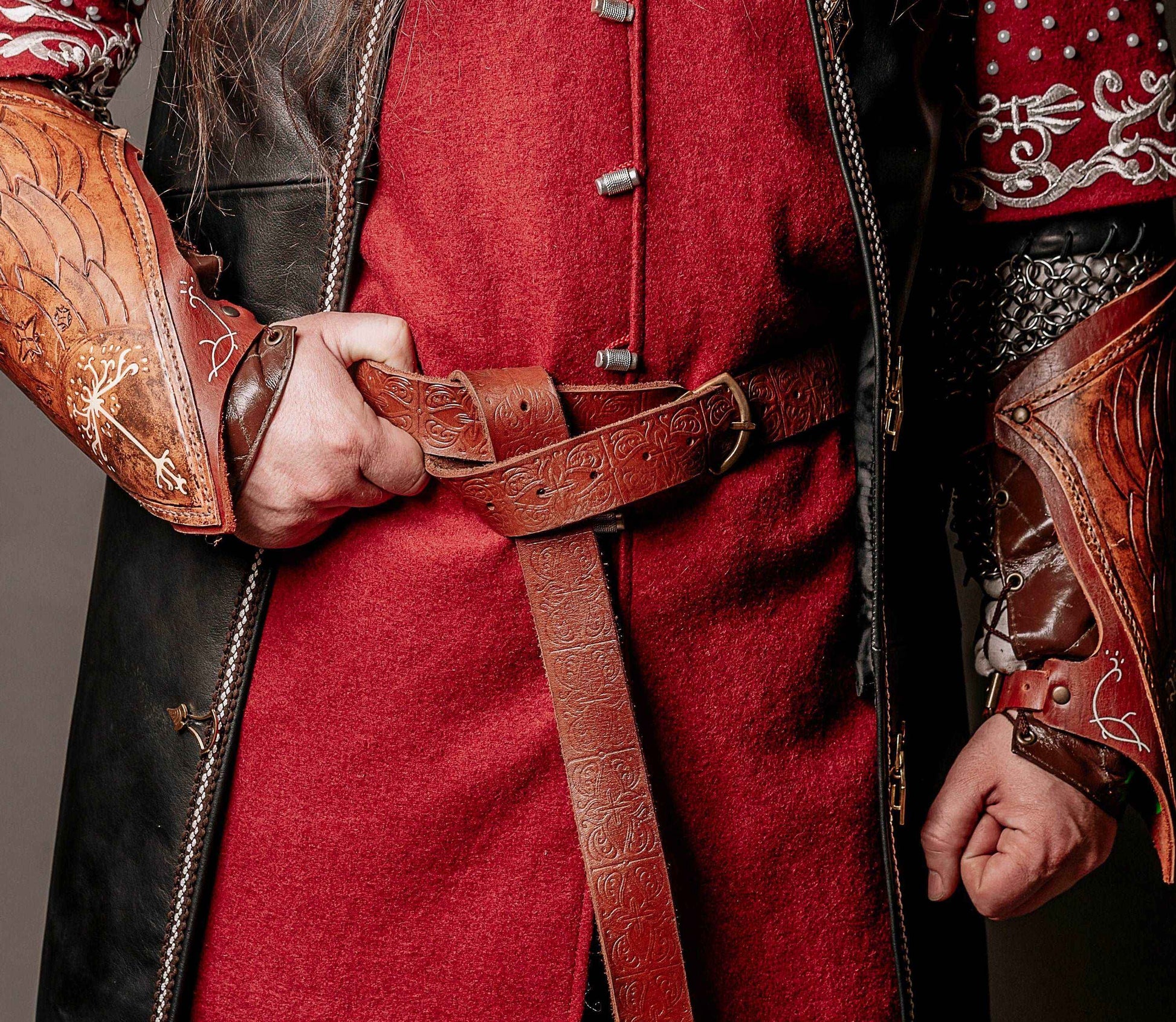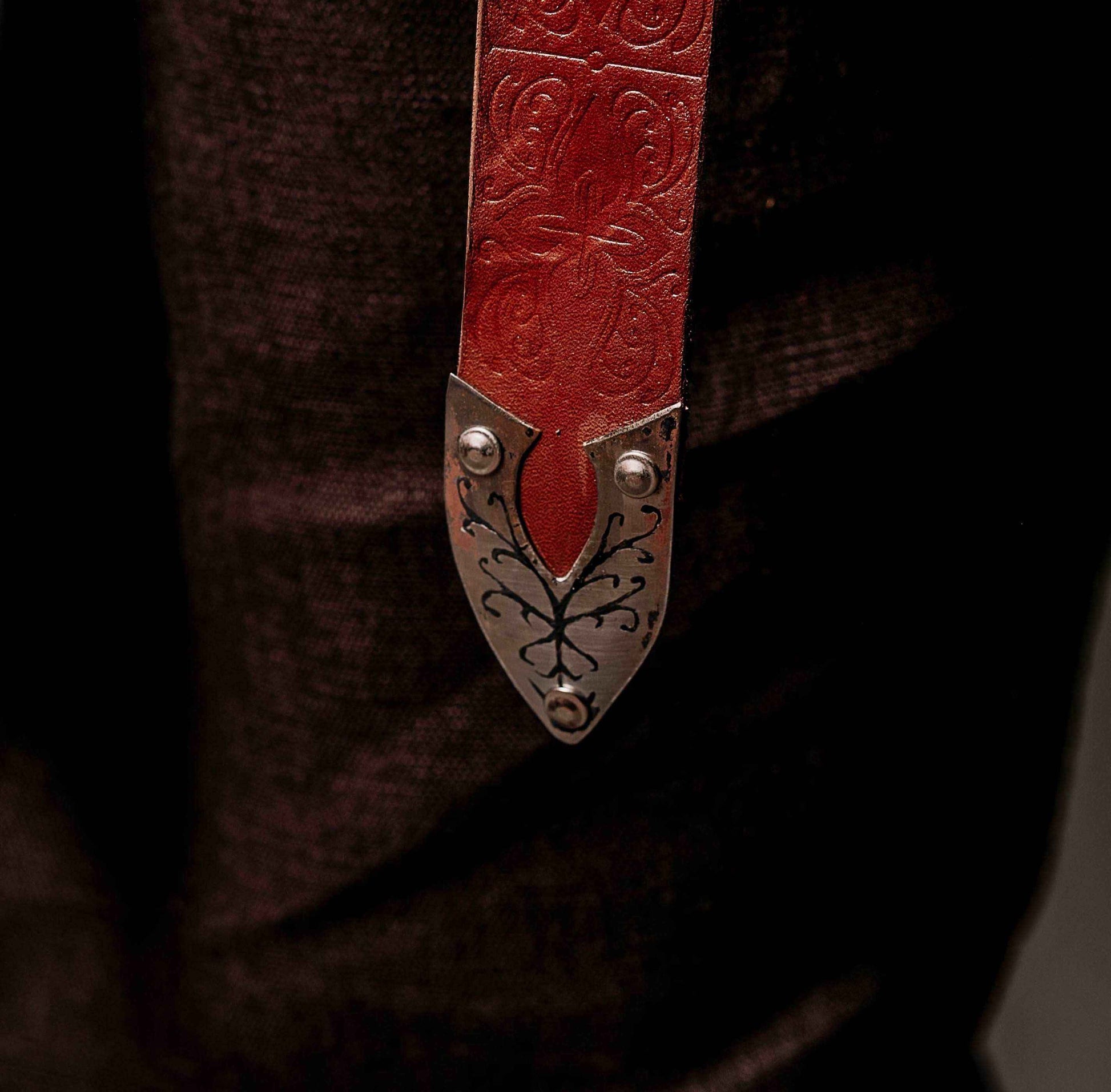 Leather belt for LARP made hand. Imagined and created by our leathercraft team.