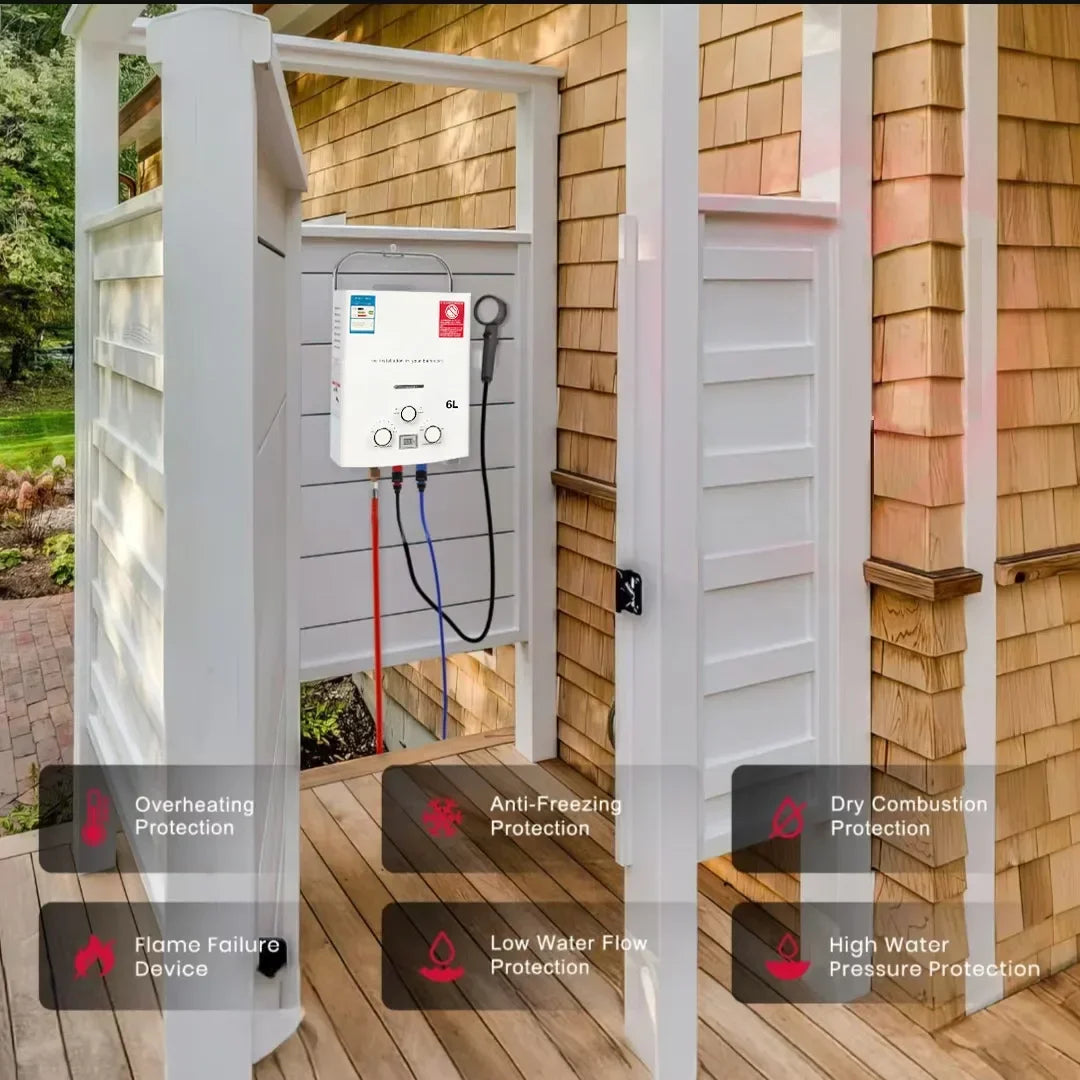 LPG Propane Gas Tankless Water Heater 6L Outdoor Camping Instant Heating Bath With Shower Head Hot Water Heater Car Truck Tent