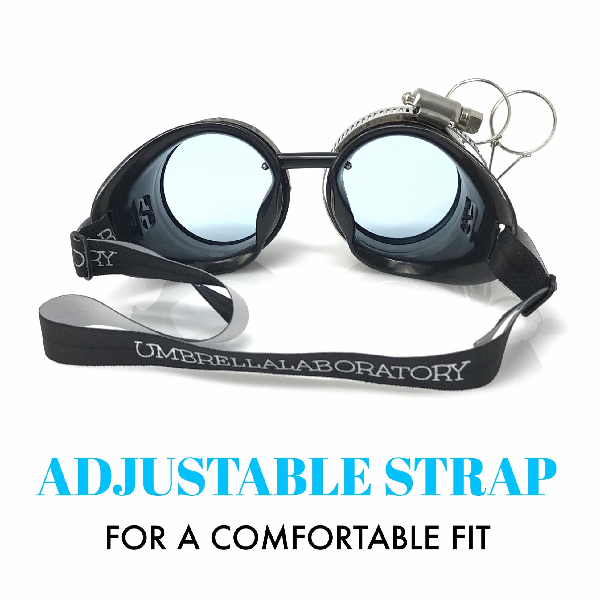 Take your steampunk costume to the next level with these Goggles. Featuring magnifying loupes and light blue lenses, these glasses are sure to make a statement. Perfect for any steampunk enthusiast or cosplay enthusiast looking to elevate their look. Who needs 20/20 vision when you've got these stylish goggles?!