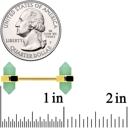 14G 5/8 Green Gem Gold Tone Barbell Nipple Ring Set