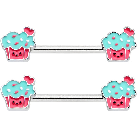 14G 9/16 Sweet Happy Cupcake Barbell Nipple Ring Set