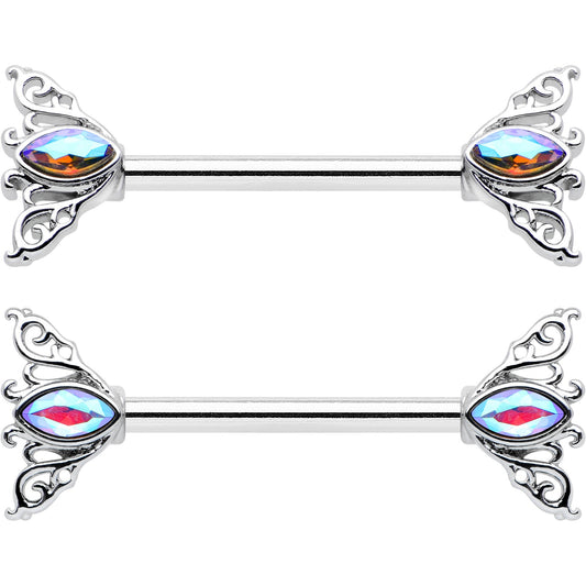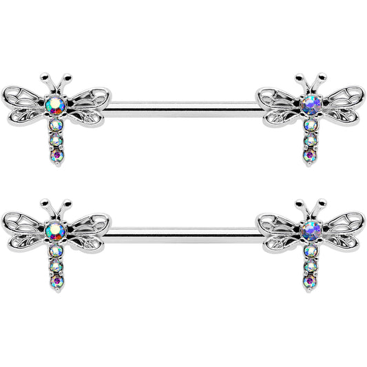 14G 9/16 Aurora Gem Ornate Dragonflies Barbell Nipple Ring Set