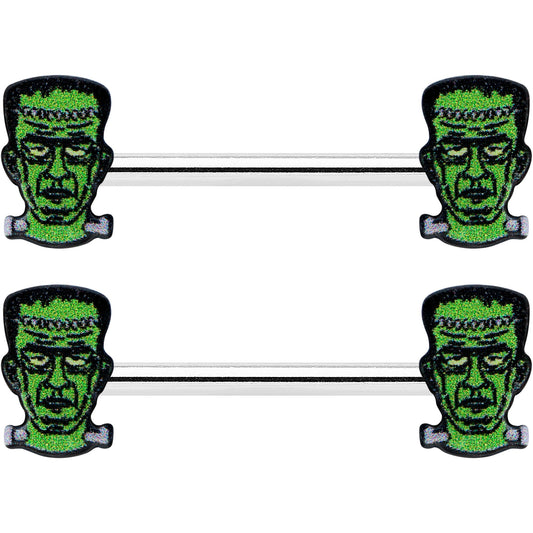 14G 9/16 Frankenstein Head Green Glow in the Dark Nipple Ring Set