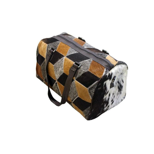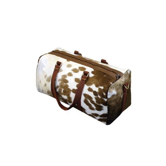 Handmade Genuine Leather Duffel Bag Large Travel Bag Cow Hide Weekend Bag Overnight Bag in Brown & White