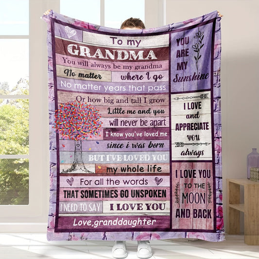 1pc To Grandma Lovely Saying Flannel Blanket, Summer Air Conditioning Blanket, Autumn And Winter Nap Print Blankets