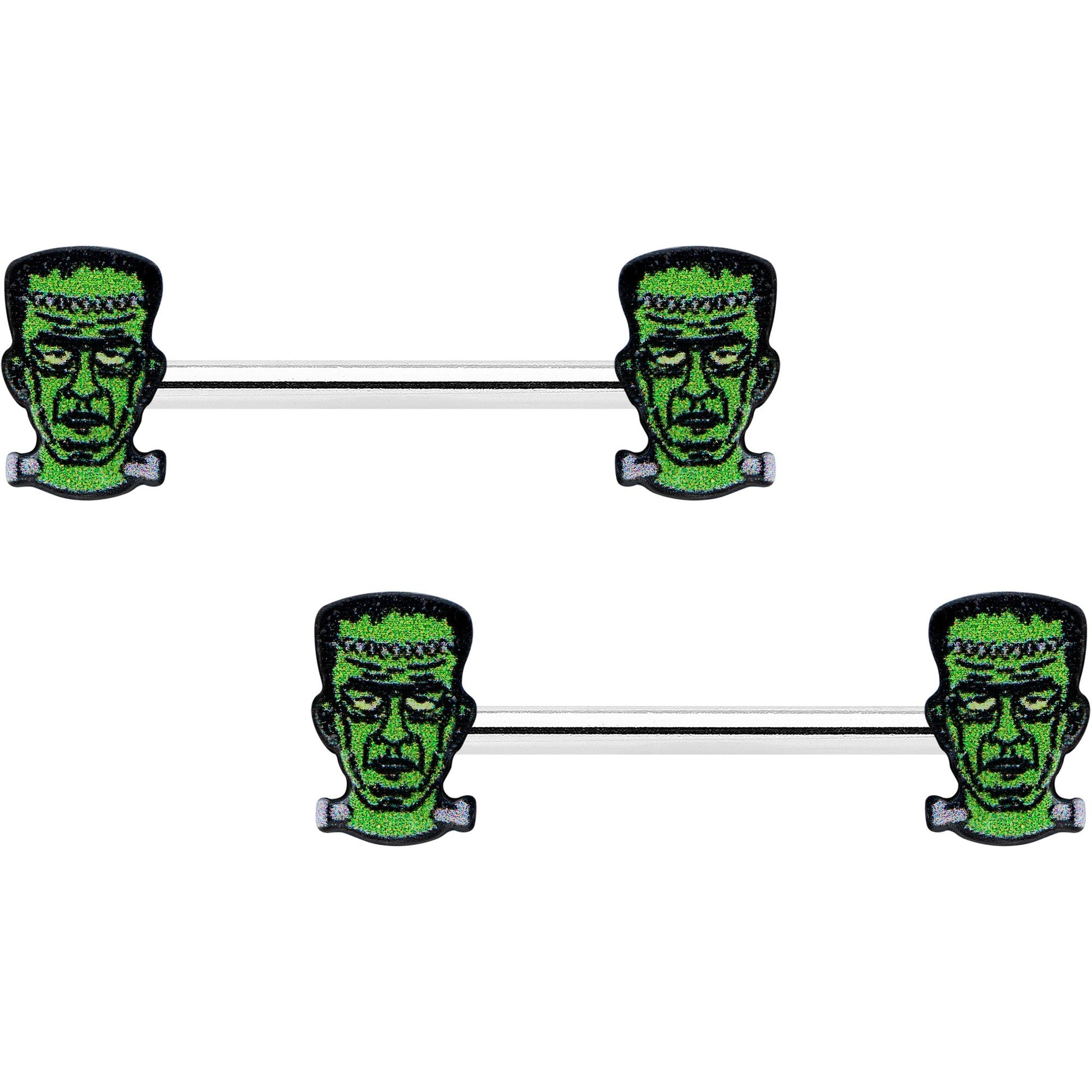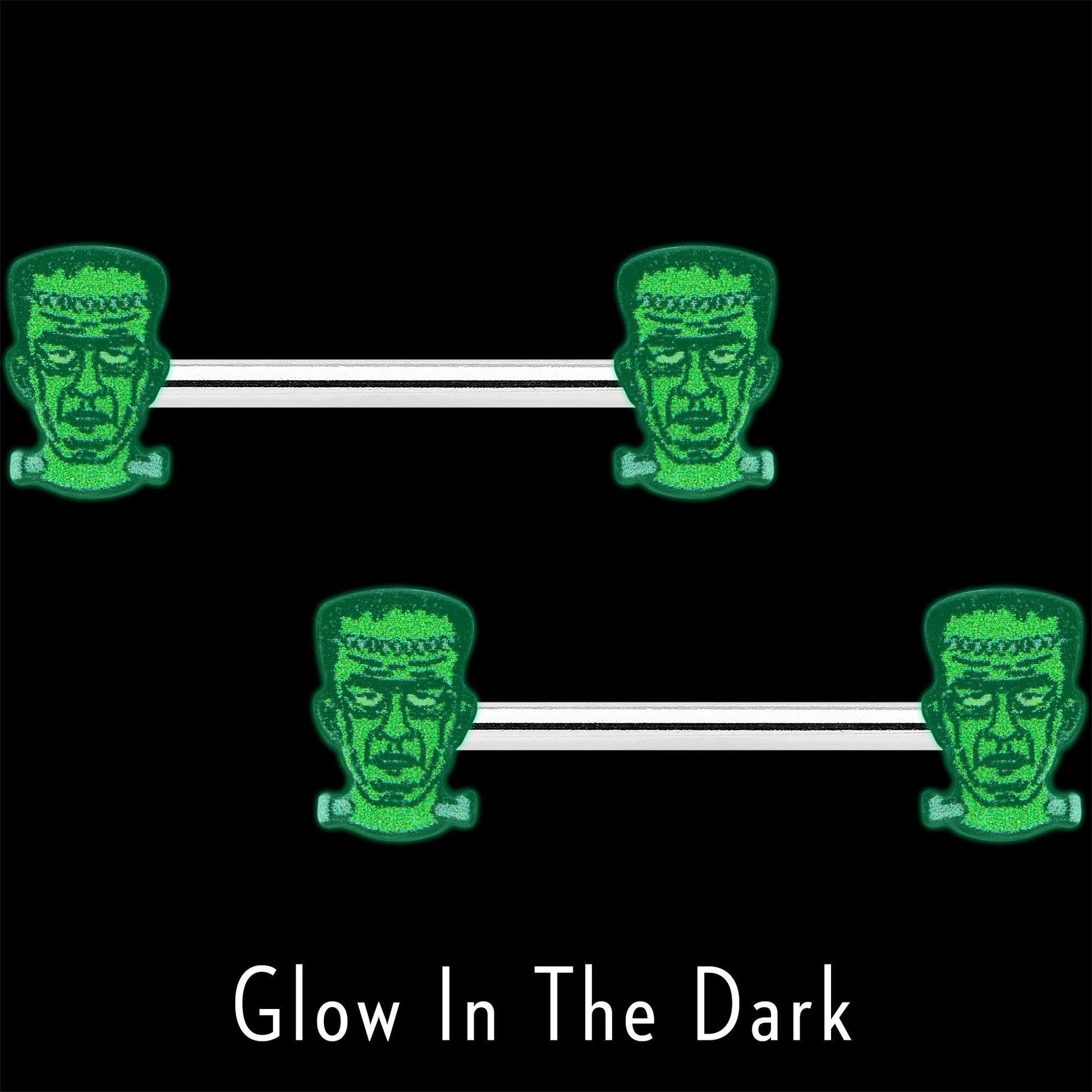 14G 9/16 Frankenstein Head Green Glow in the Dark Nipple Ring Set