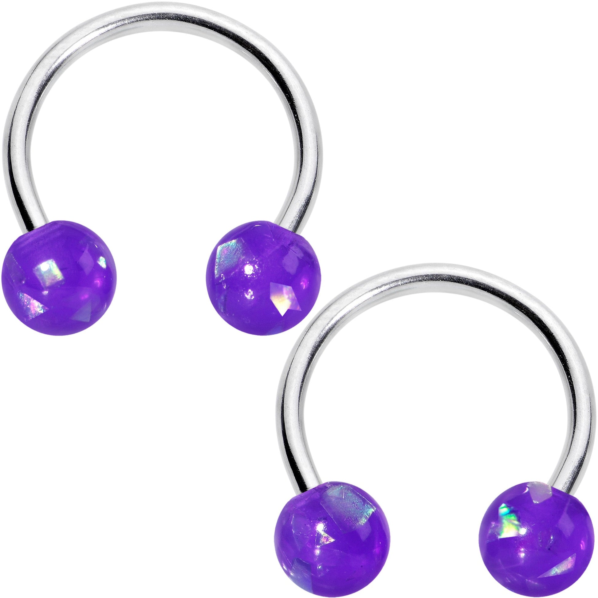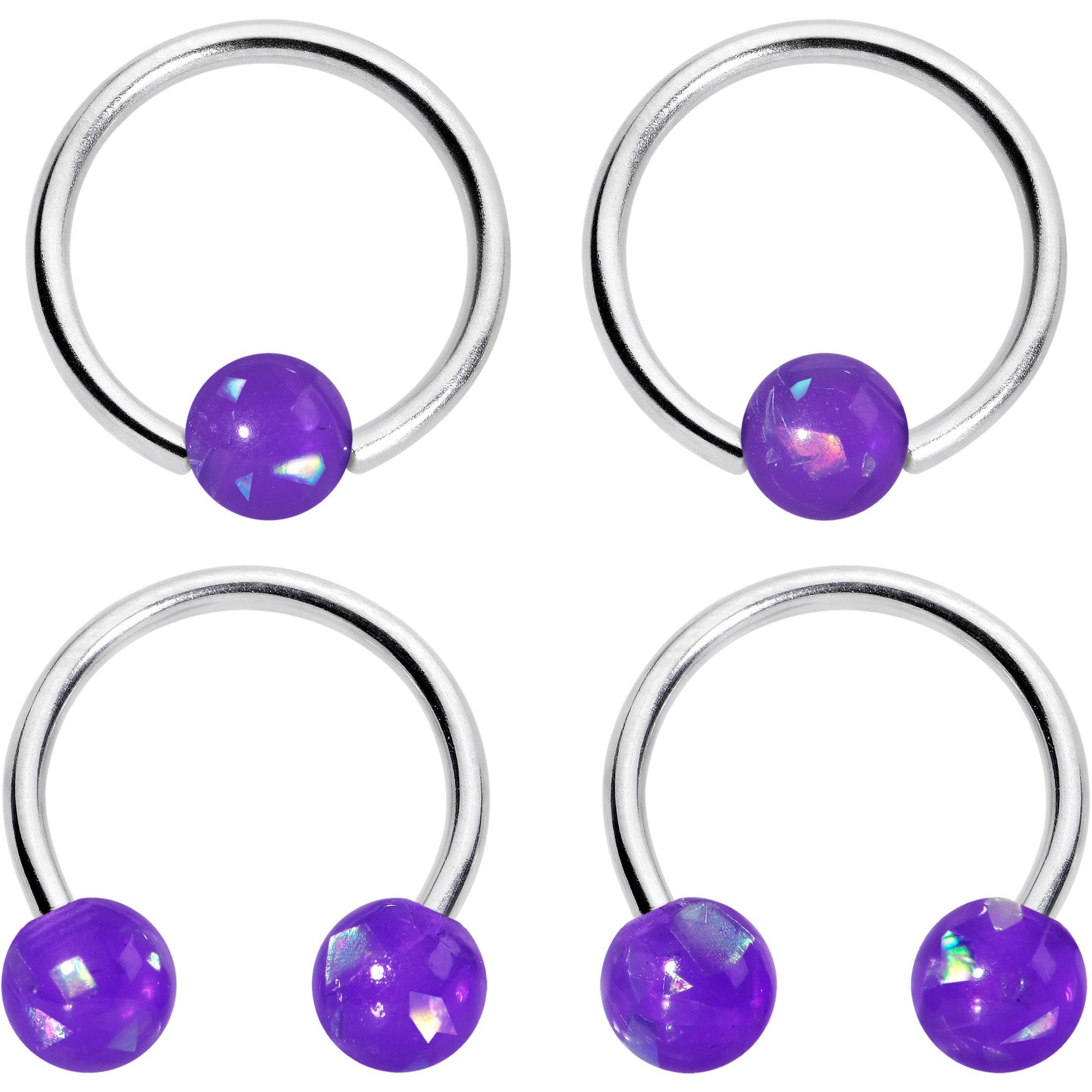 16 Gauge 3/8 Purple Faux Opal Horseshoe BCR Captive Ring Set of 4