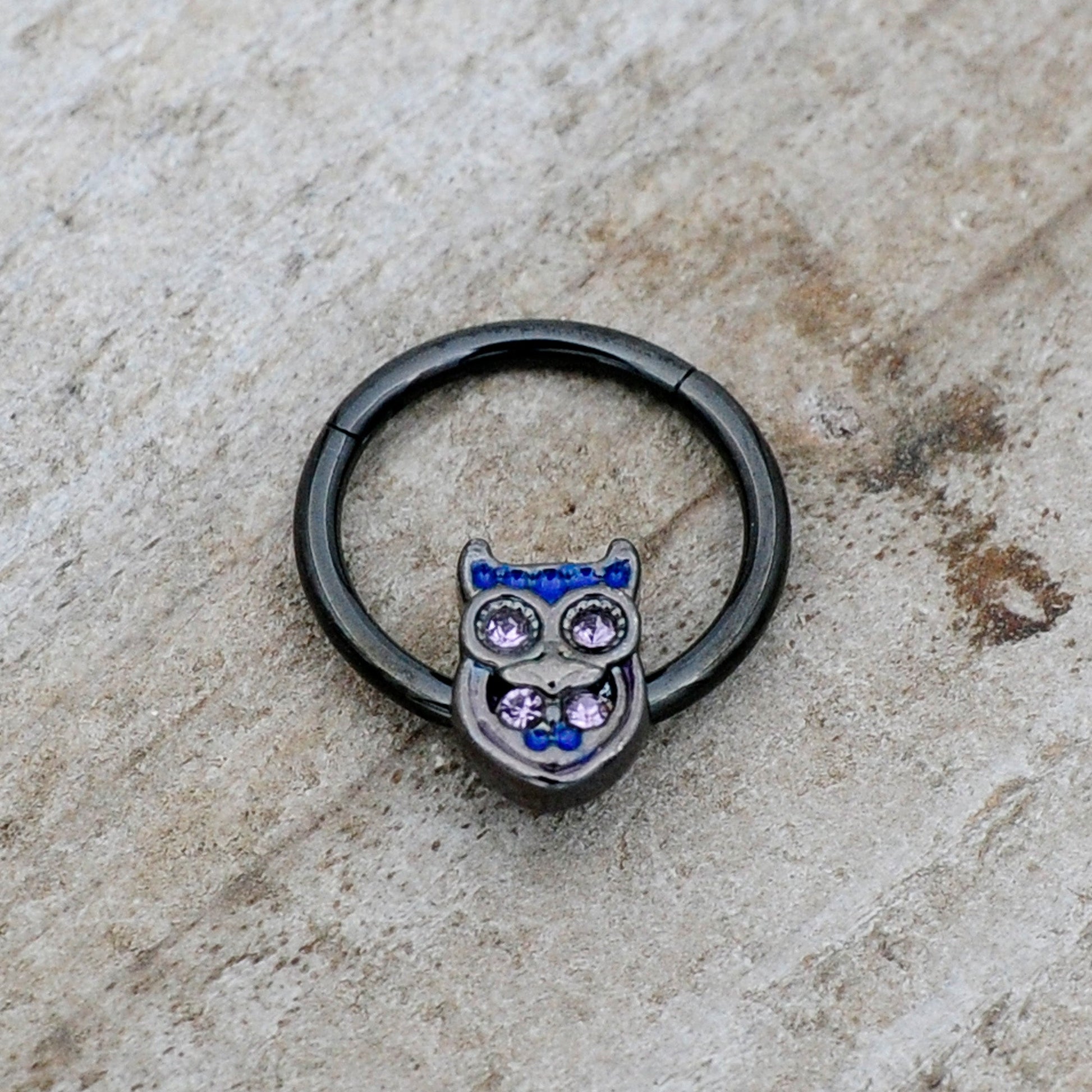 16 Gauge 3/8 Purple Gem Black Opulent Owl Hinged Segment Ring