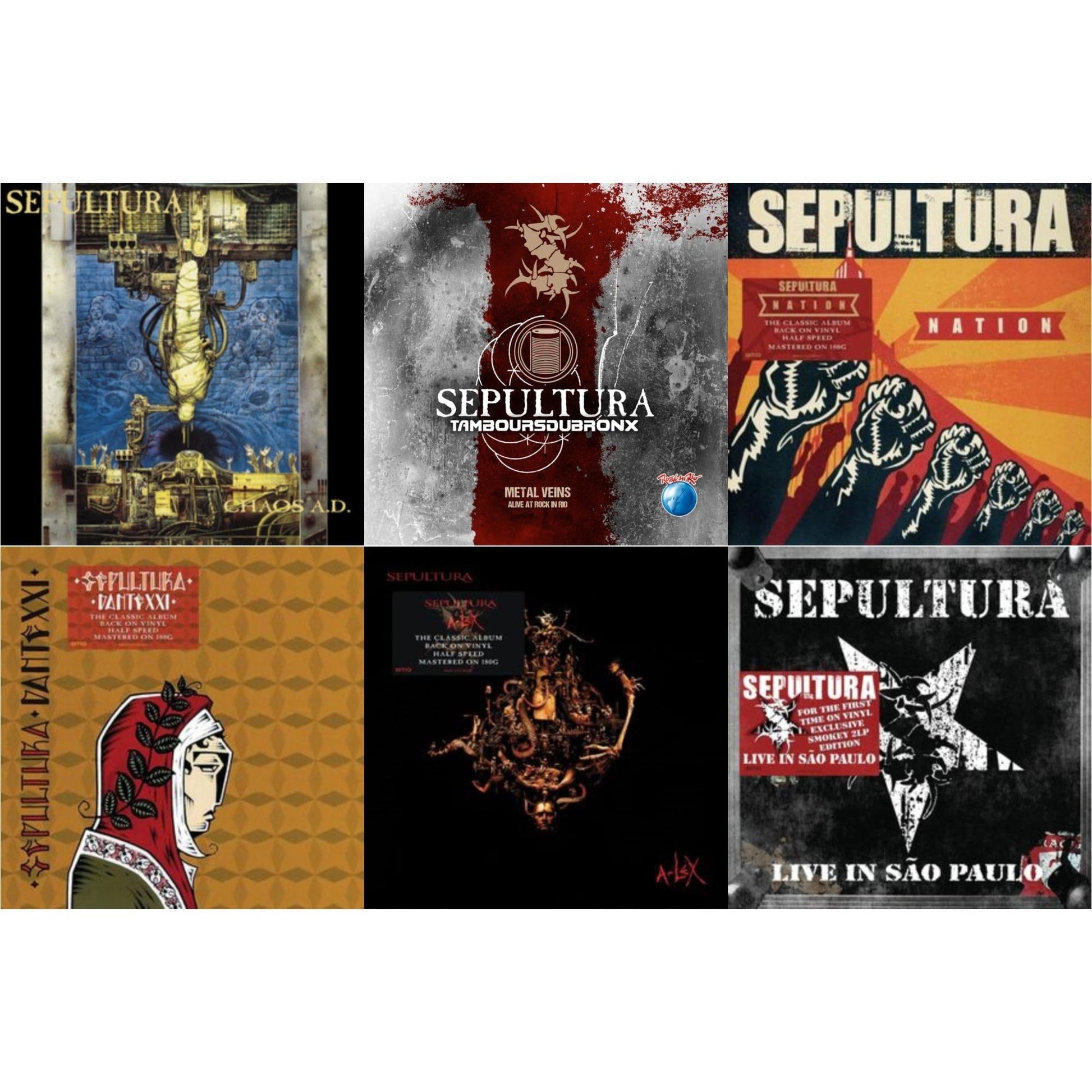 Chaos A.D. (Expanded Edition/2LP) & Metal Veins - Alive At Rock In Rio (Limited/2LP) & Nation (2LP) & Dante Xxi & A-Lex (2LP) & Live In Sao Paulo (2LP)