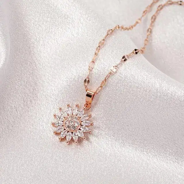 Add a touch of sunshine to your style with our Double-layer Rotatable Sunflower Necklaces. Whether you're treating yourself or surprising a loved one, these exquisite necklaces are sure to brighten anyone's day. Order now and elevate your jewelry collection with a piece that radiates beauty and grace.