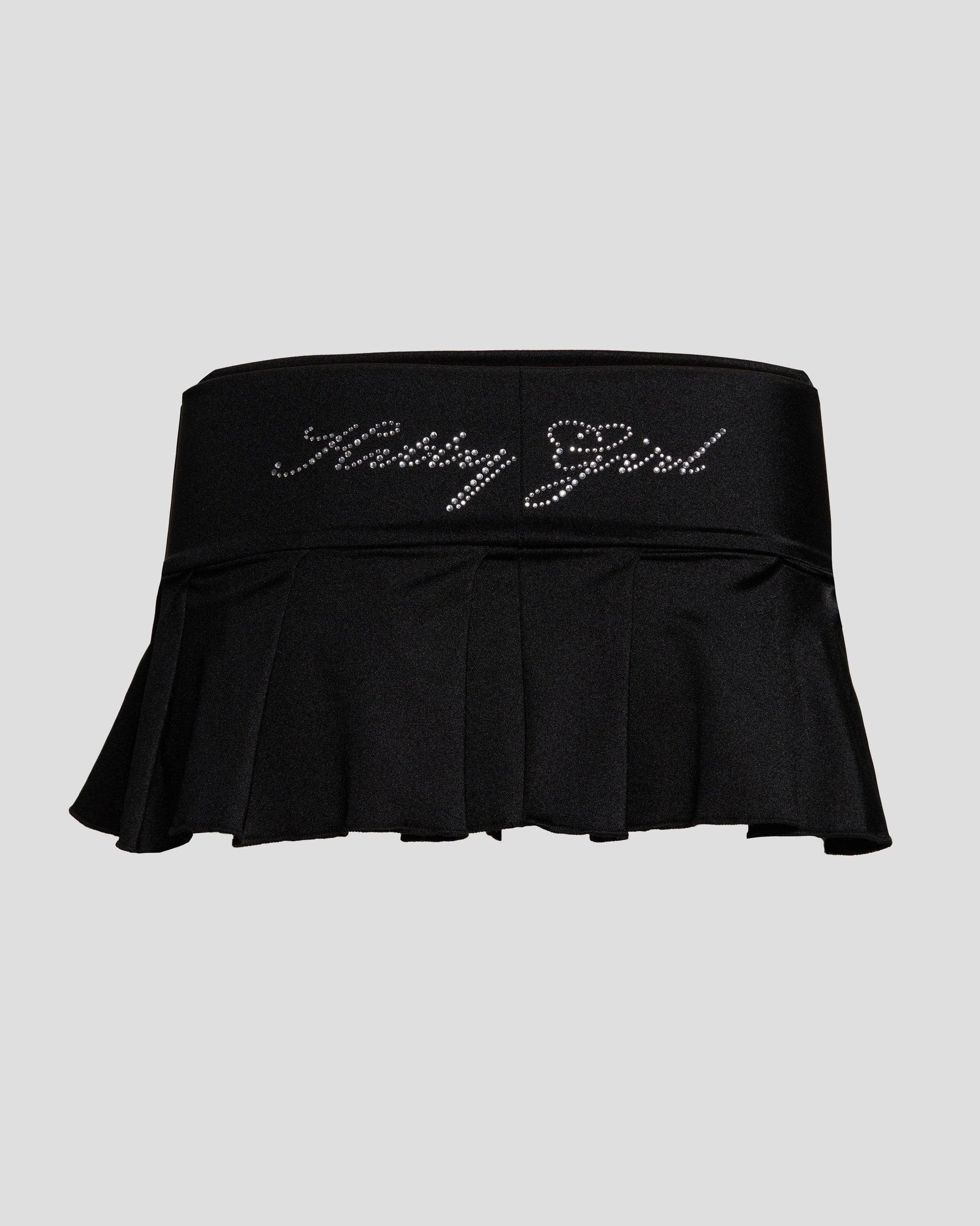 โข Design: Classic pleats with a cheeky micro-mini length, accented with a satin bow detail.