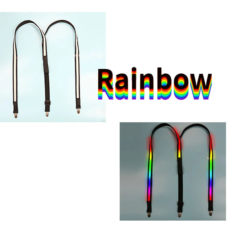 • Suspenders: Elastic strap construction with LED integration