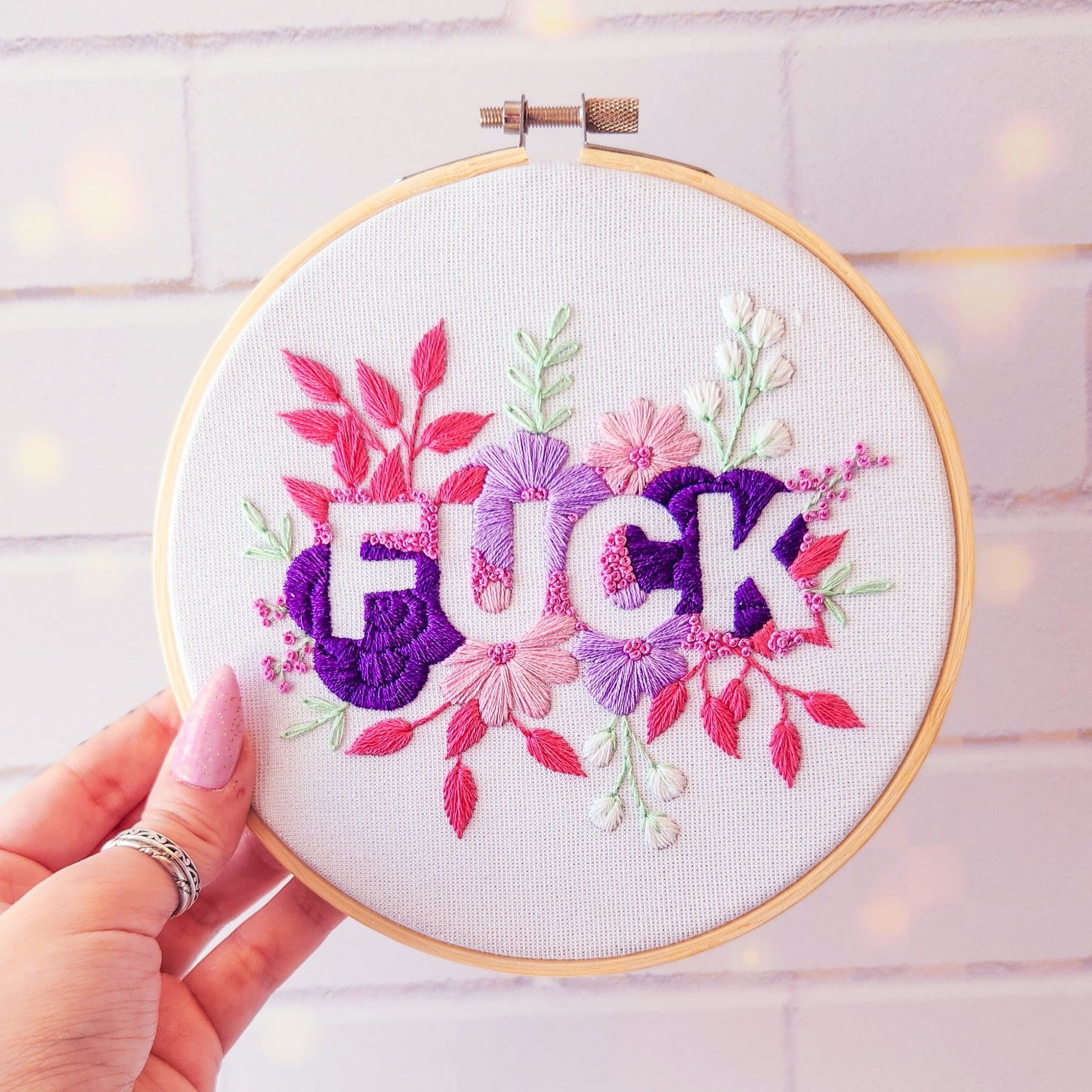 Pink Negative Space FUCK Embroidery Kit - Beginner Friendly
