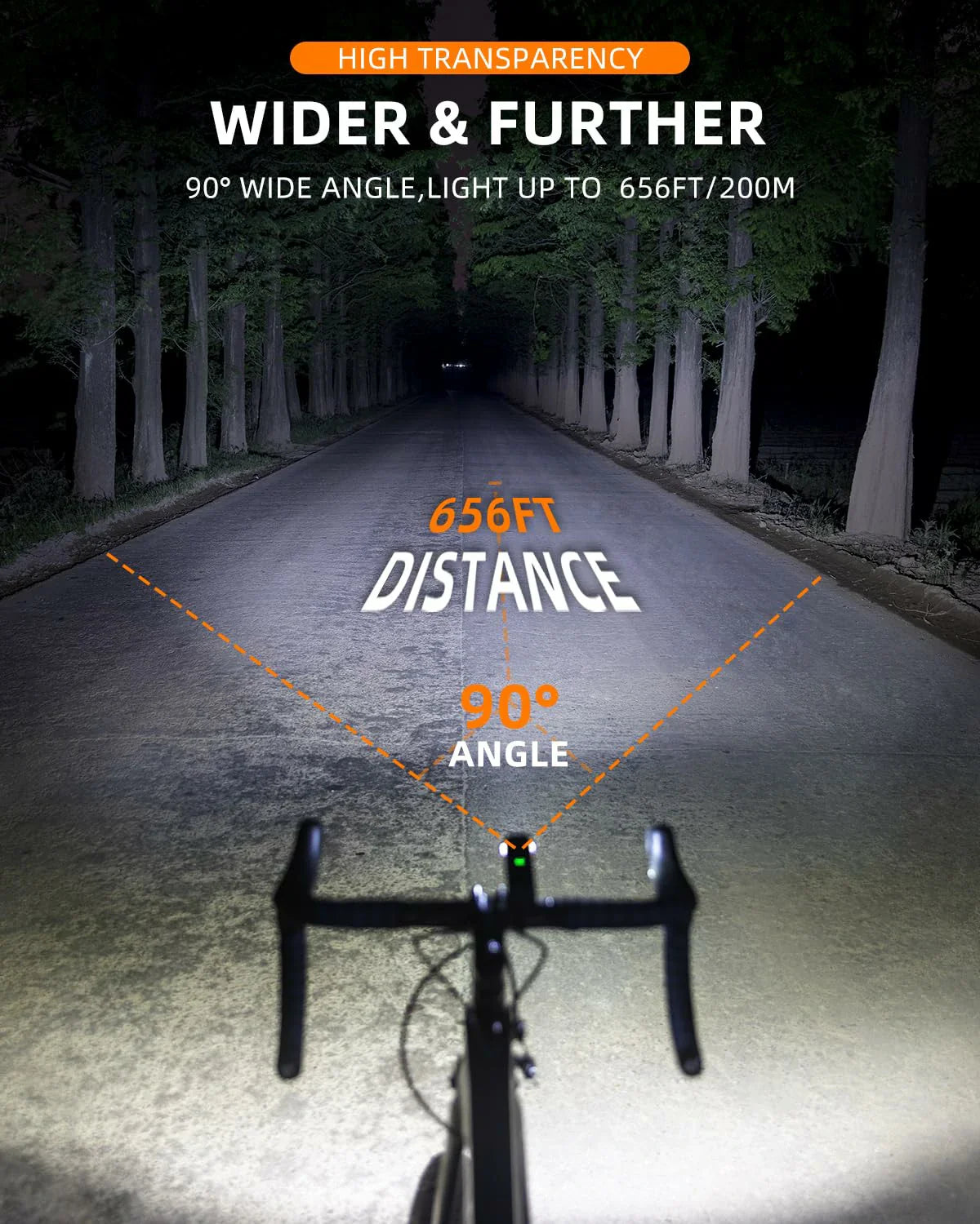 - Bright & Clear: ROCKBROS 1000 lumens bike headlight can light up to 656ft/200m, bring a good vision ahead for night riding.90° wide lighting and high transparency acrylic lens bring a wider and brighter light range but soft effect without dazzying.
