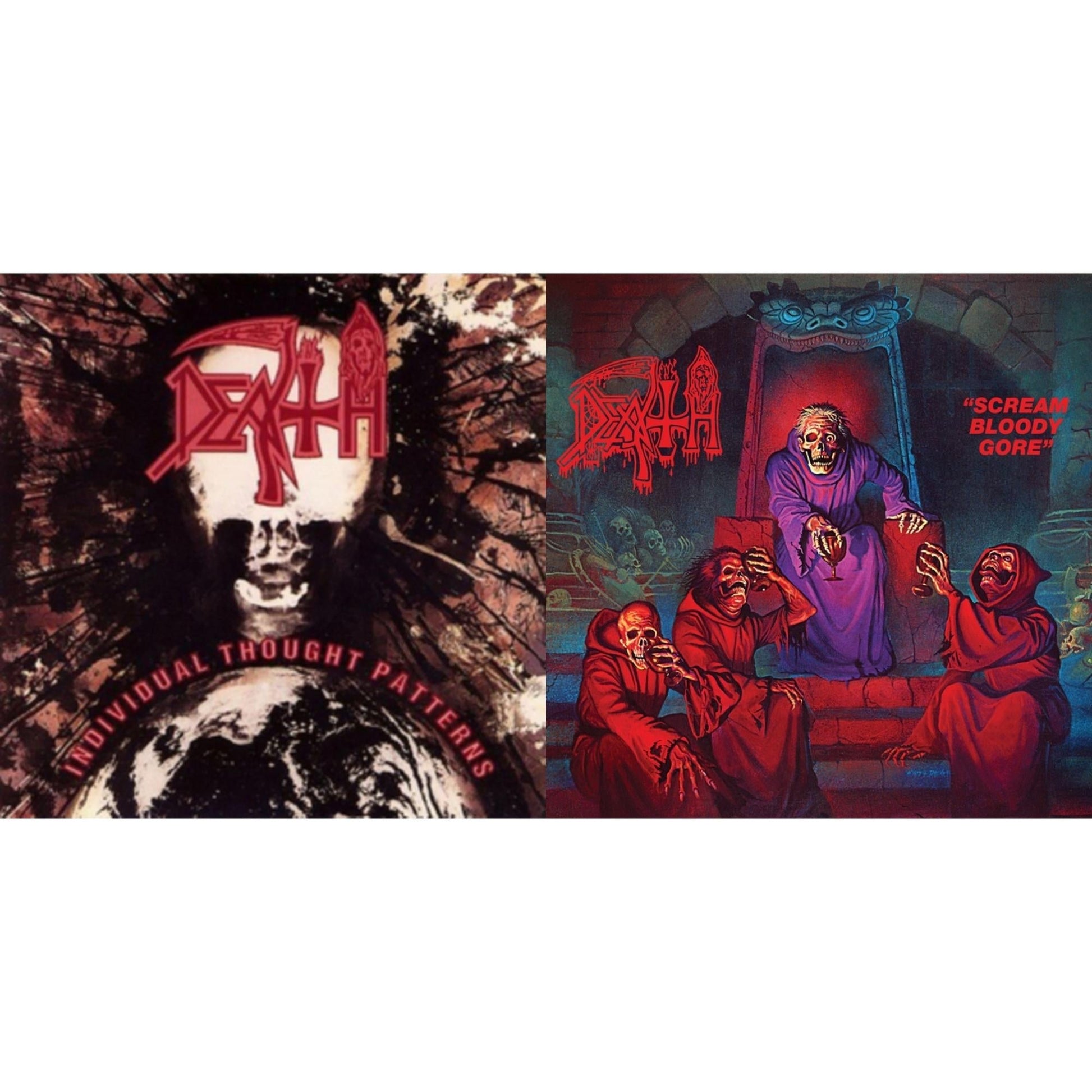 Scream Bloody Gore (Neon Violet, Bone White & Red Tri Color Merge With Splatter LP Vinyl) & Individual Thought Patterns - Reissue