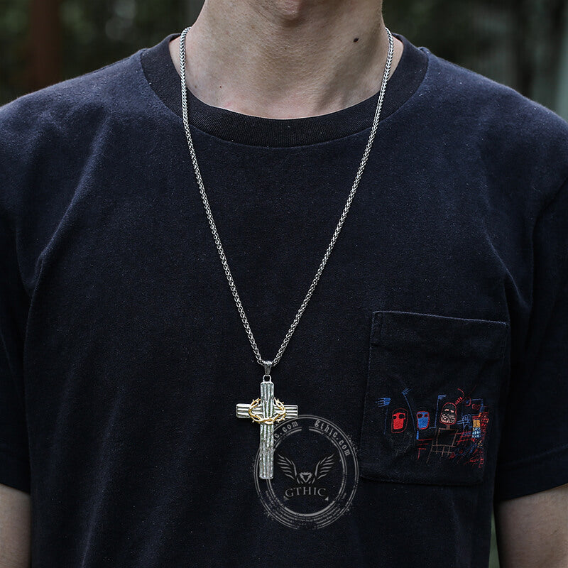 This Thorn Cross Stainless Steel Christian Pendant is expertly crafted with durable stainless steel, making it a long-lasting and stylish accessory for any believer. With its simple design featuring a thorn and a cross, this pendant serves as a constant reminder of faith and devotion. A perfect gift for yourself or a loved one.