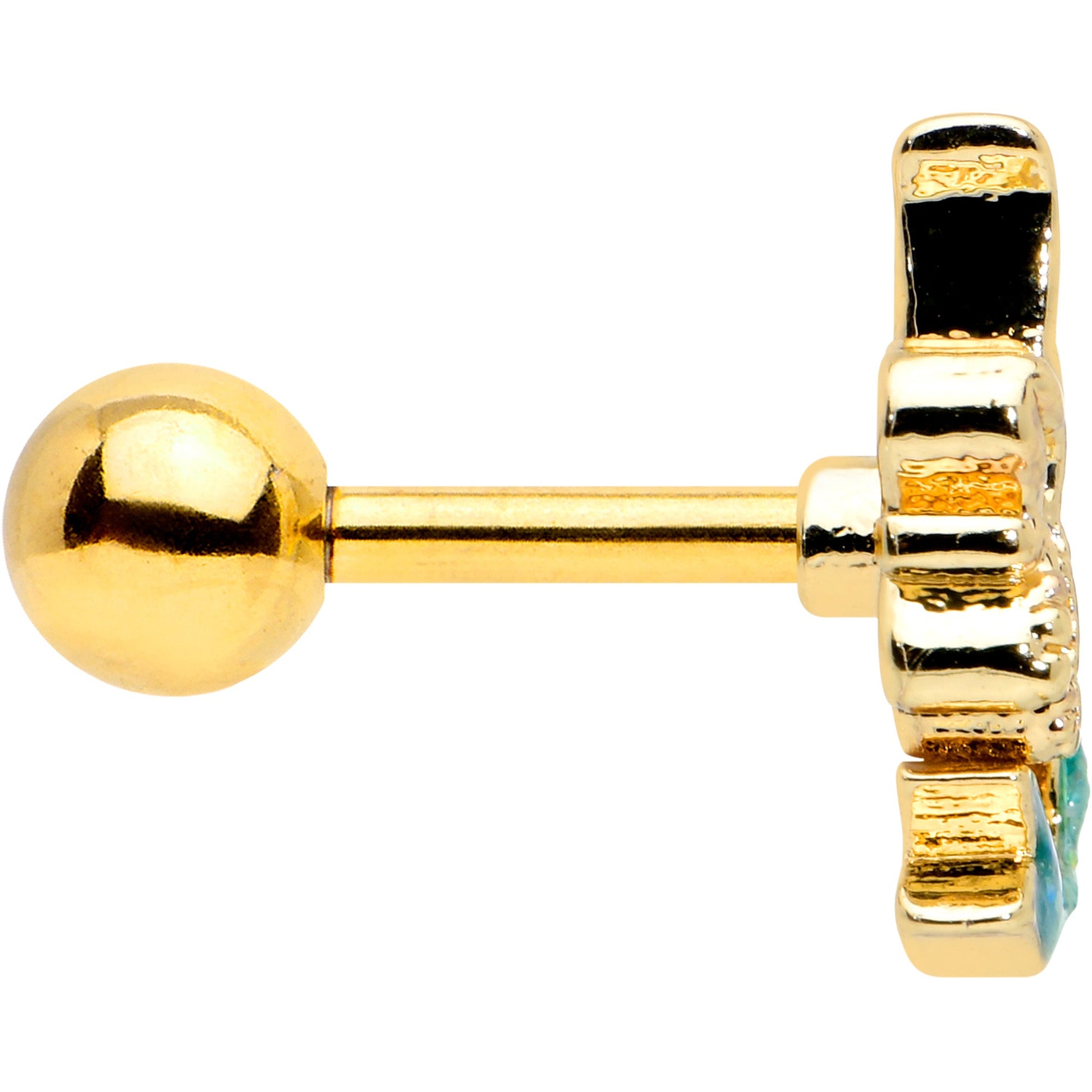 16G 1/4 Green Faux Opal Gold Hue Curvy Mermaid Cartilage Tragus