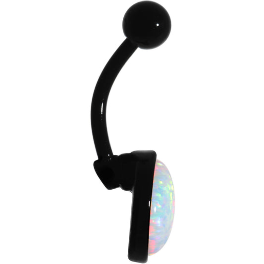 White Synthetic Opal Black Anodized Bottom Mount Belly Ring