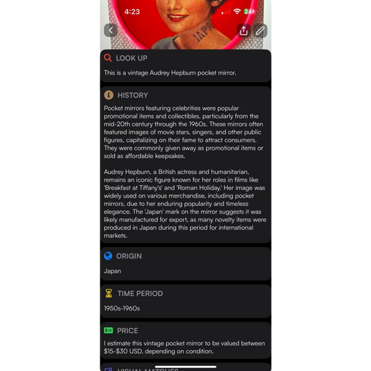 Rare 1950s Audrey Hepburn Vintage Collectible Pocket Mirror