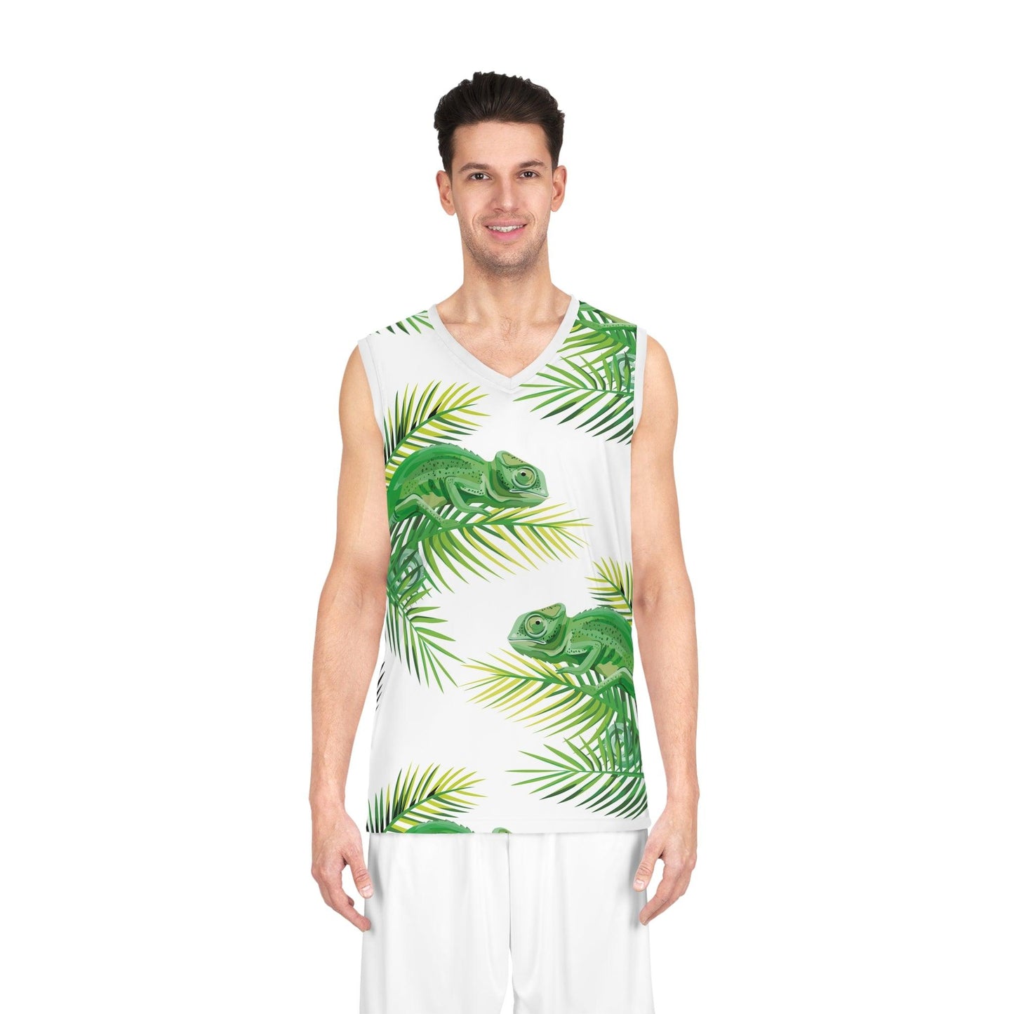 Chameleons on Banana Leaves Basketball Jersey
