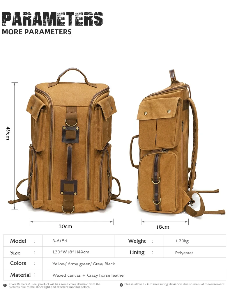 Vintage Leather 16-Inch Laptop Backpack – Waxed Canvas and PU Leather Shoulder Rucksack, Travel Carry-On Bag for Men and Women