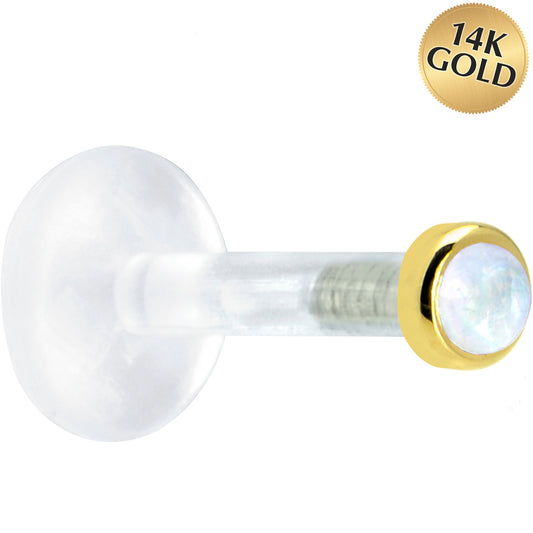 Solid 14K Yellow Gold 2mm Genuine Rainbow Moonstone Bioplast Push in Labret
