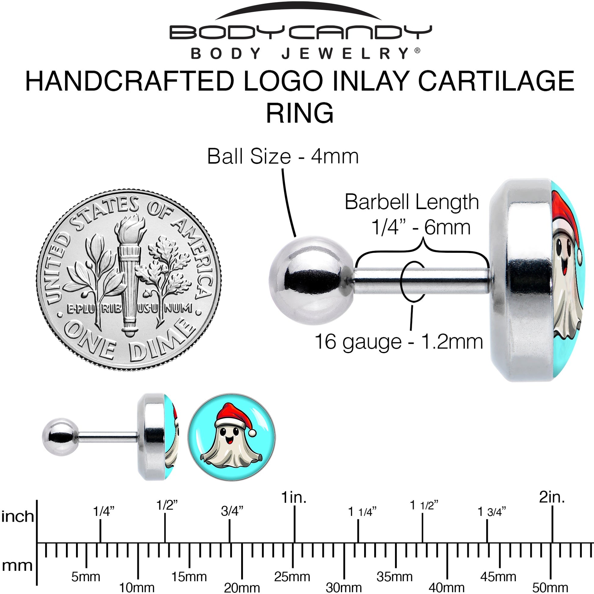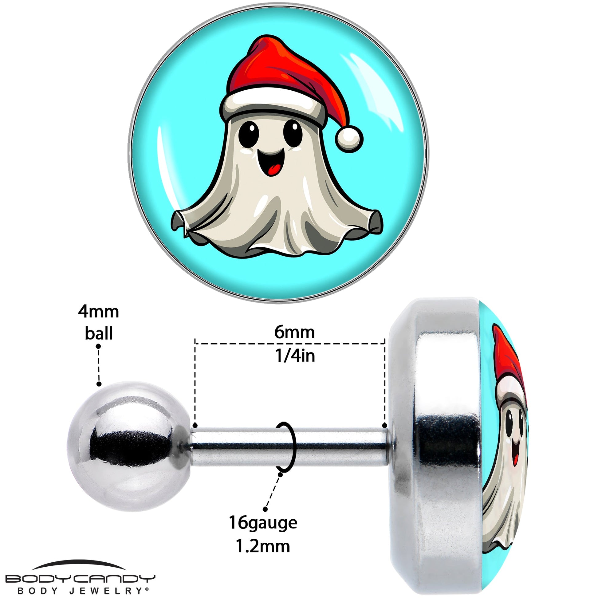 Hypoallergenic jewelry for sensitive skin.16 Gauge 1/4 Holiday Christmas Spirit Ghost Tragus Cartilage Earring