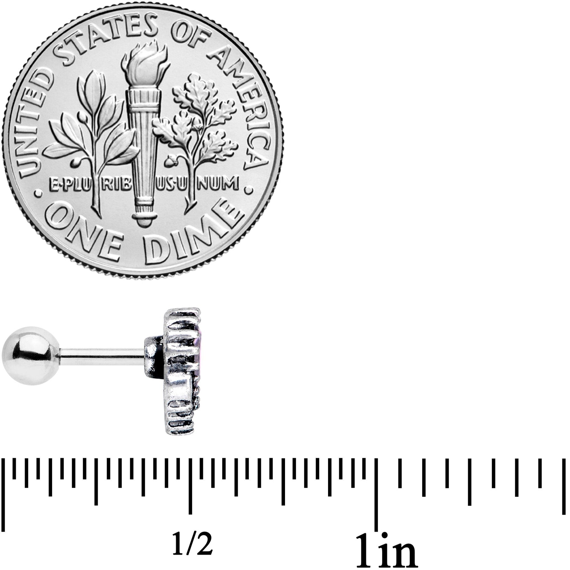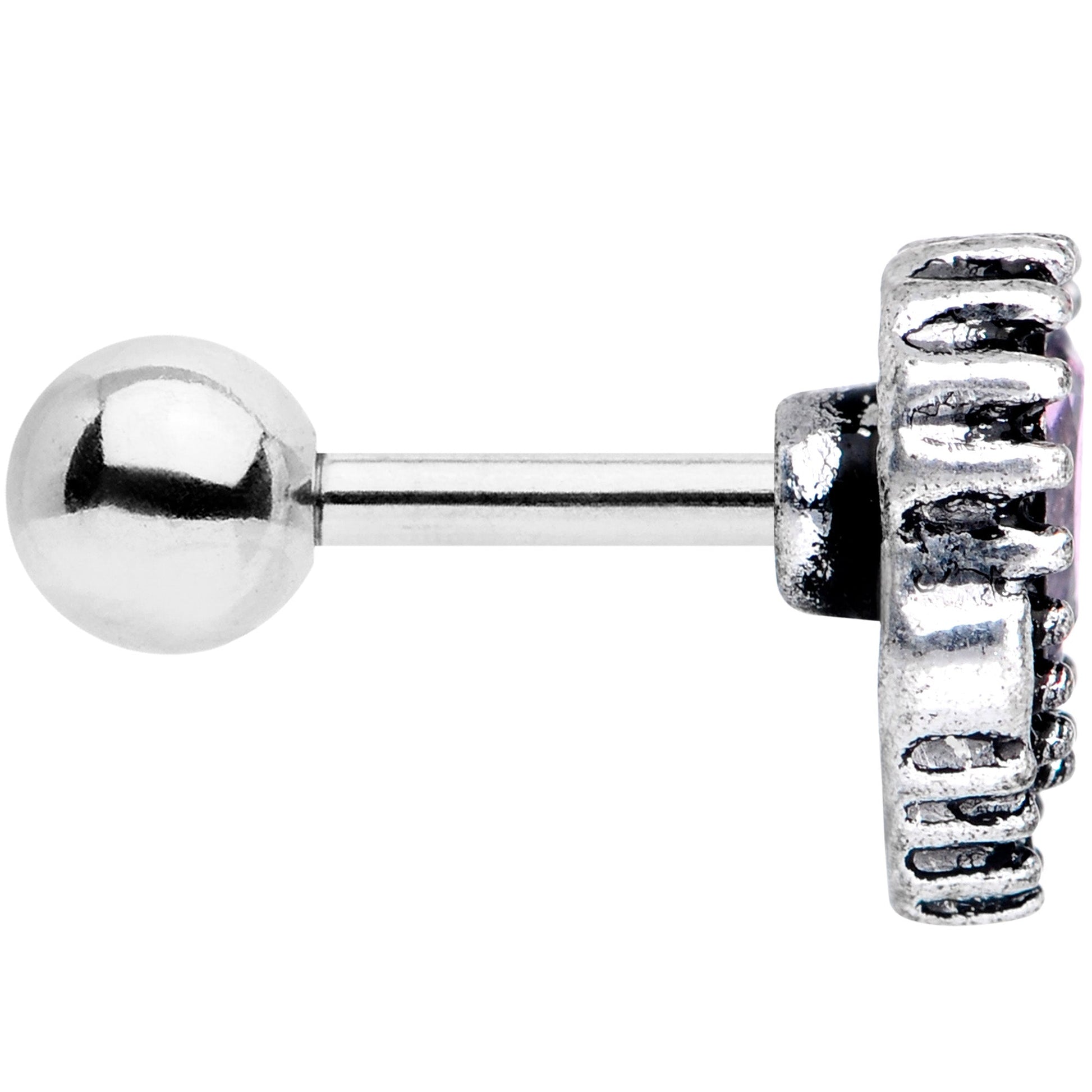 This 16 gauge tragus stud is more than fit to grace the cartilage piercings of any queen or king! It's made with a 6mm durable 316L surgical grade stainless steel straight barbell with a 4mm ball end. The front features a large pink gem heart-shaped charm with textured edging that's been burnished for added visual impact. And you can wear this heart in multiple piercings including tragus, helix, and some conch piercings. Make your cartilage piercings look like royalty with this stylishly stately Valentine's Day tragus jewelry!