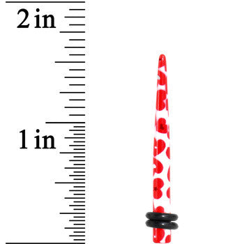 Hypoallergenic jewelry for sensitive skin.4mm ear taper. This white acrylic ear plug features multiple red hearts. Heart ear expender featuring two rubber O-rings. Body piercing ear taper sold individually.