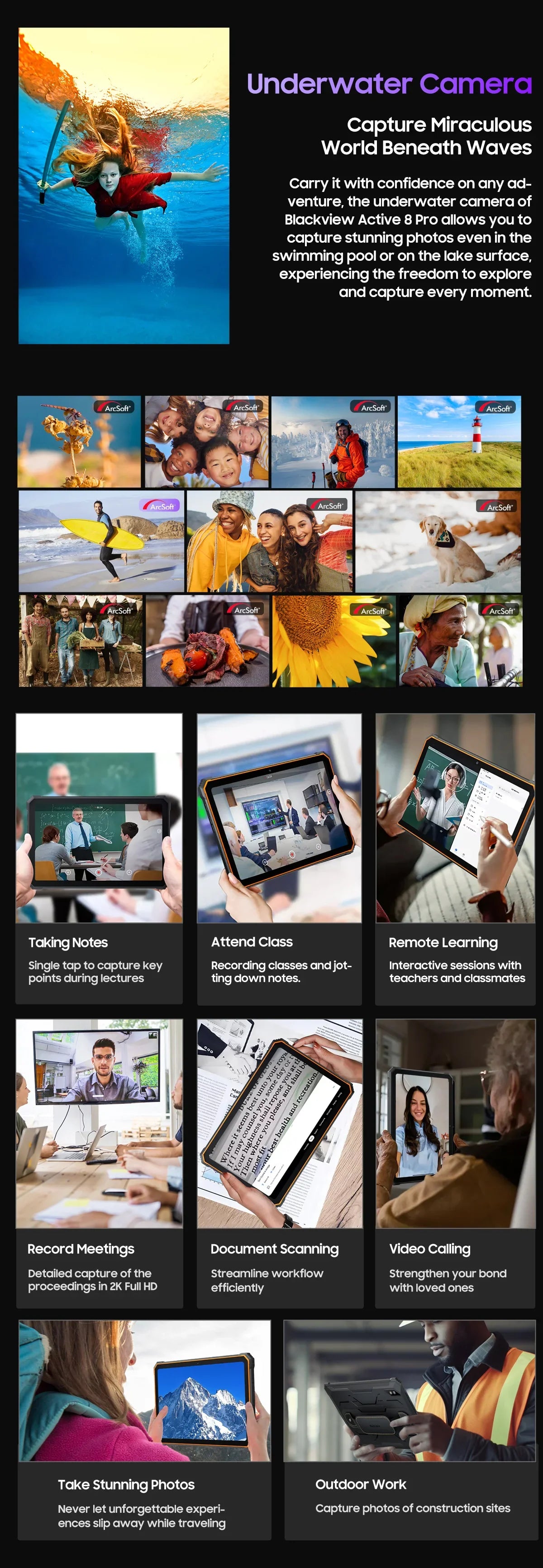 Carry it with confidence on any adventure, the underwater camera of Blackview Active 8 Pro allows you to capture stunning photo seven in the swimming pool or on the lake surface, experiencing the freedom to explore and capture every moment.
