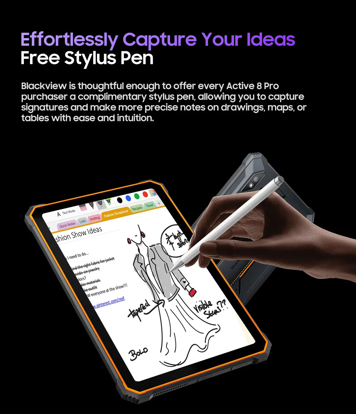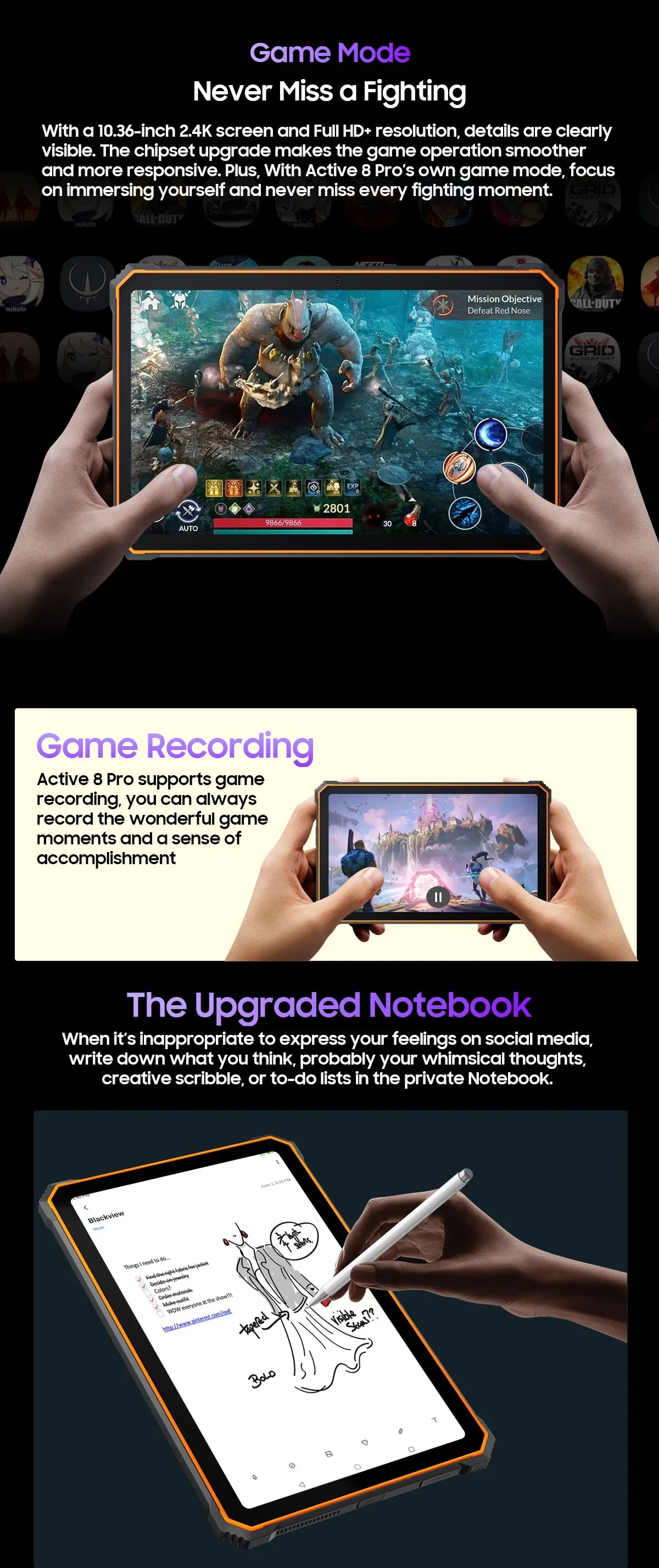 Blackview Active 8 Pro 16GB 256GB Tablet PC 22000mAh Battery Android 13 10.36" inch 2.4K Display 16MP+ 48MP Camera Rugged Tablet