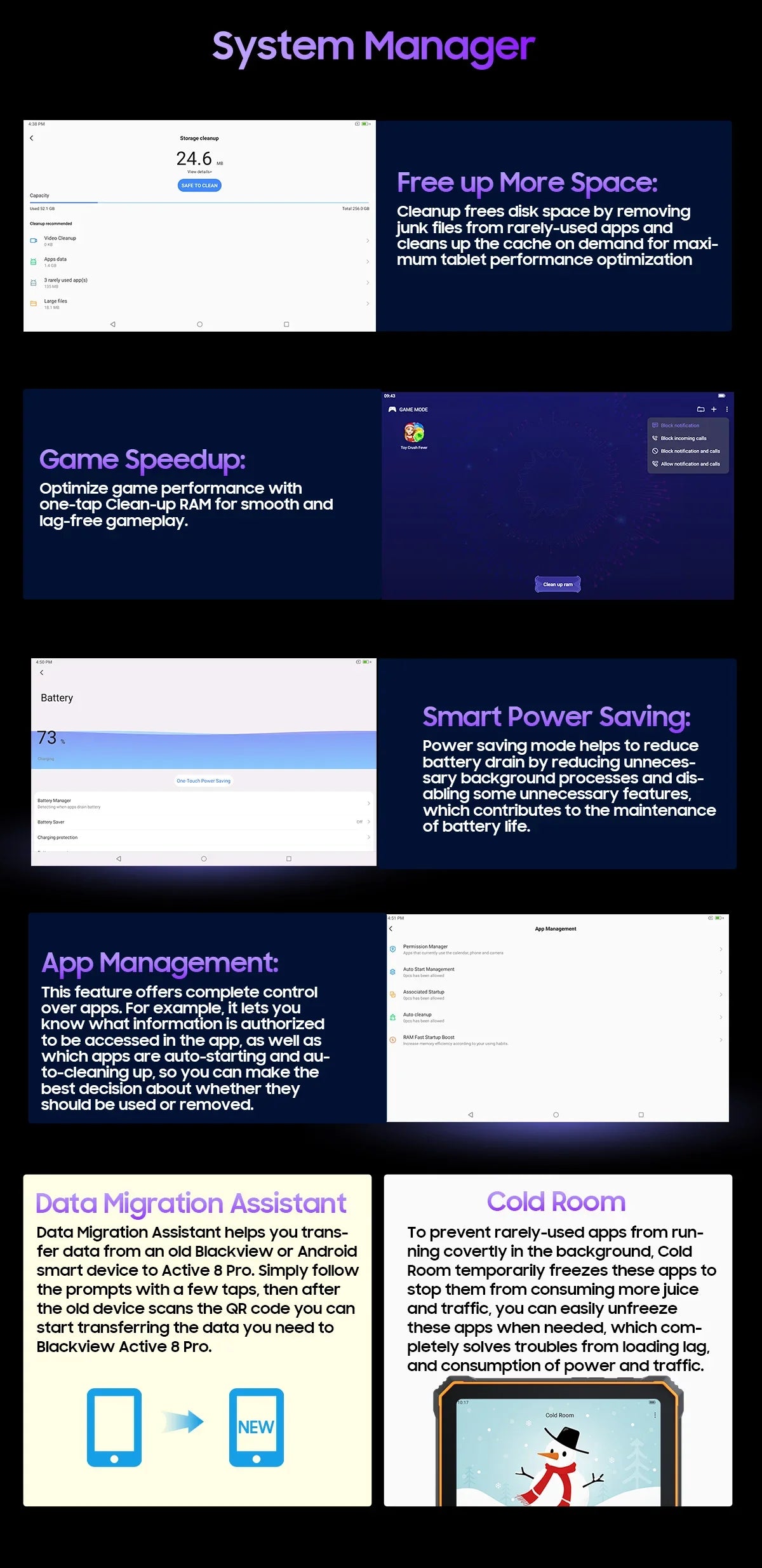 With the latest revision of MIL-STD-810H, Active 8 Pro has been upgraded by Blackview to offer unparalleled protection against harsh environments such as water, dust, and drops. With the peace of mind and confidence to tackle any challenge, this device can be relied on in any condition.