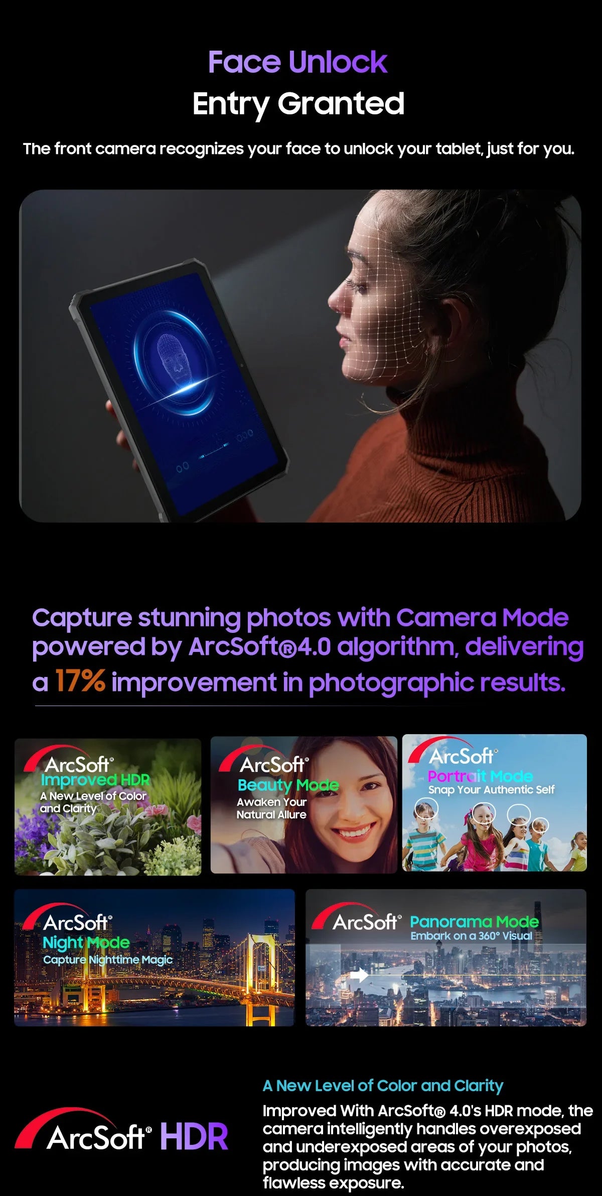 Looking for a way to look your best in every shot? Beauty mode on Active 8 Pro is powered by ArcSoft®4.0 and retains more facial features while automatically removing any unwanted wrinkles, eye bags, and blemishes to present a perfect shot and a perfect you.