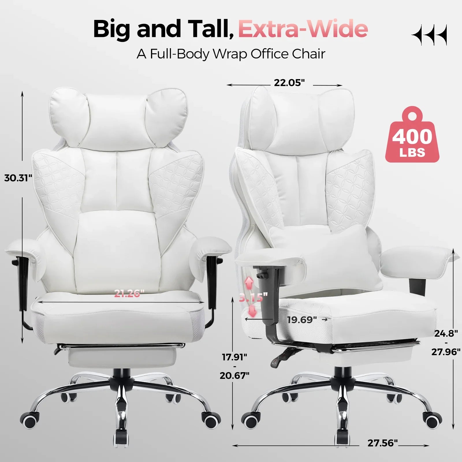 The massive, Extra-Wide SEAT and spacious seat completely eliminate those restrictive side wings, giving you freedom of movement. We’ve packed it with built-in lumbar support pocket springs so you maintain that elastic seat surface and breathability, turning any grind session into an opulent command center. The Hugging Wingback Design provides a cozy, wraparound feeling, while the integrated footrest lets you kick back into a full 90-150 °reclining position. Your comfort controls are fully locked down with height-adjustable armrests and thick padding.
