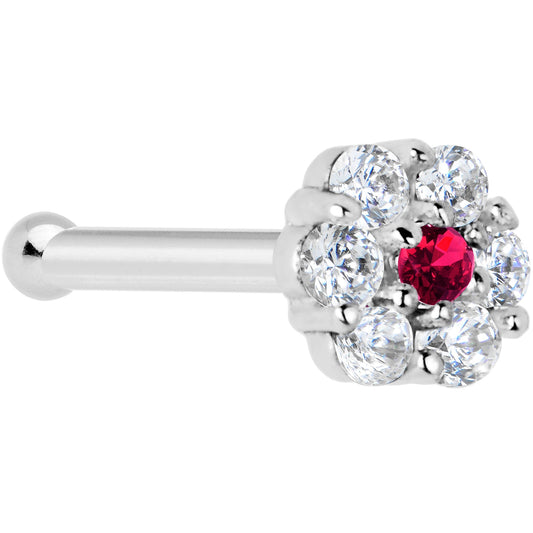 Solid 14K White Gold Red Clear CZ Flower Nose Bone